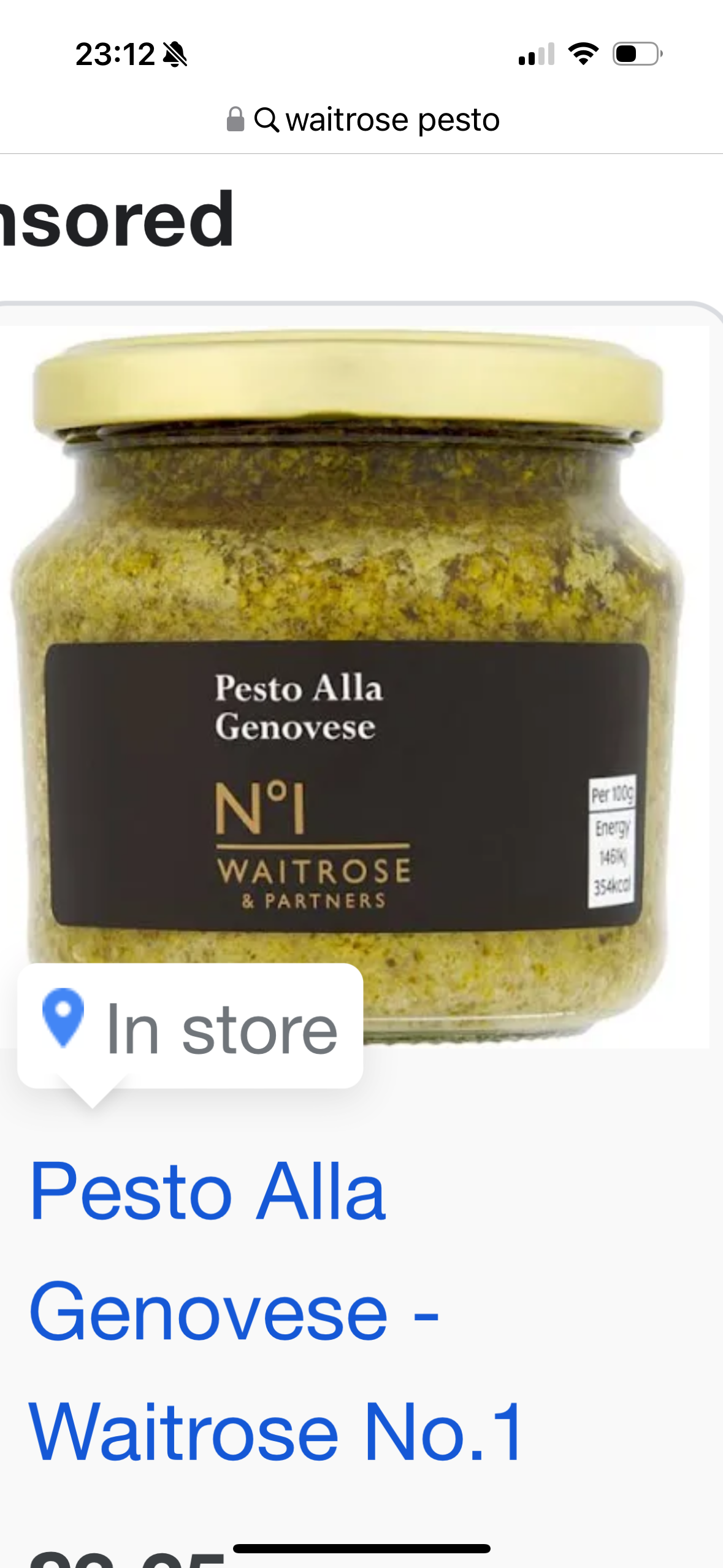 Looks decent for Pesto Linguine.The Waitrose one above is 53% basil and uses ev olive oil and 7% pine kernals.