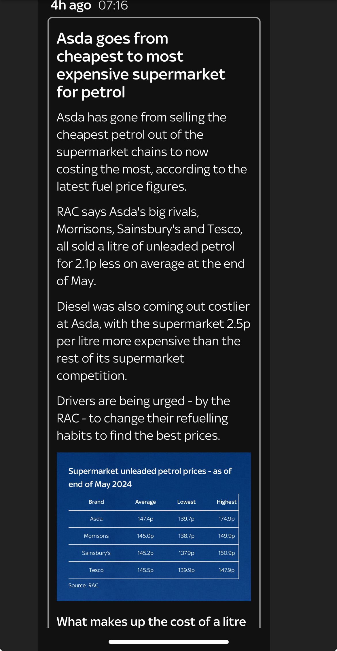 Further, even if Asda are 2p (on average) more pricey, if you go out of your way to visit one you'll need an almighty sized fuel tank to save enough to justify the additional distance to travel.