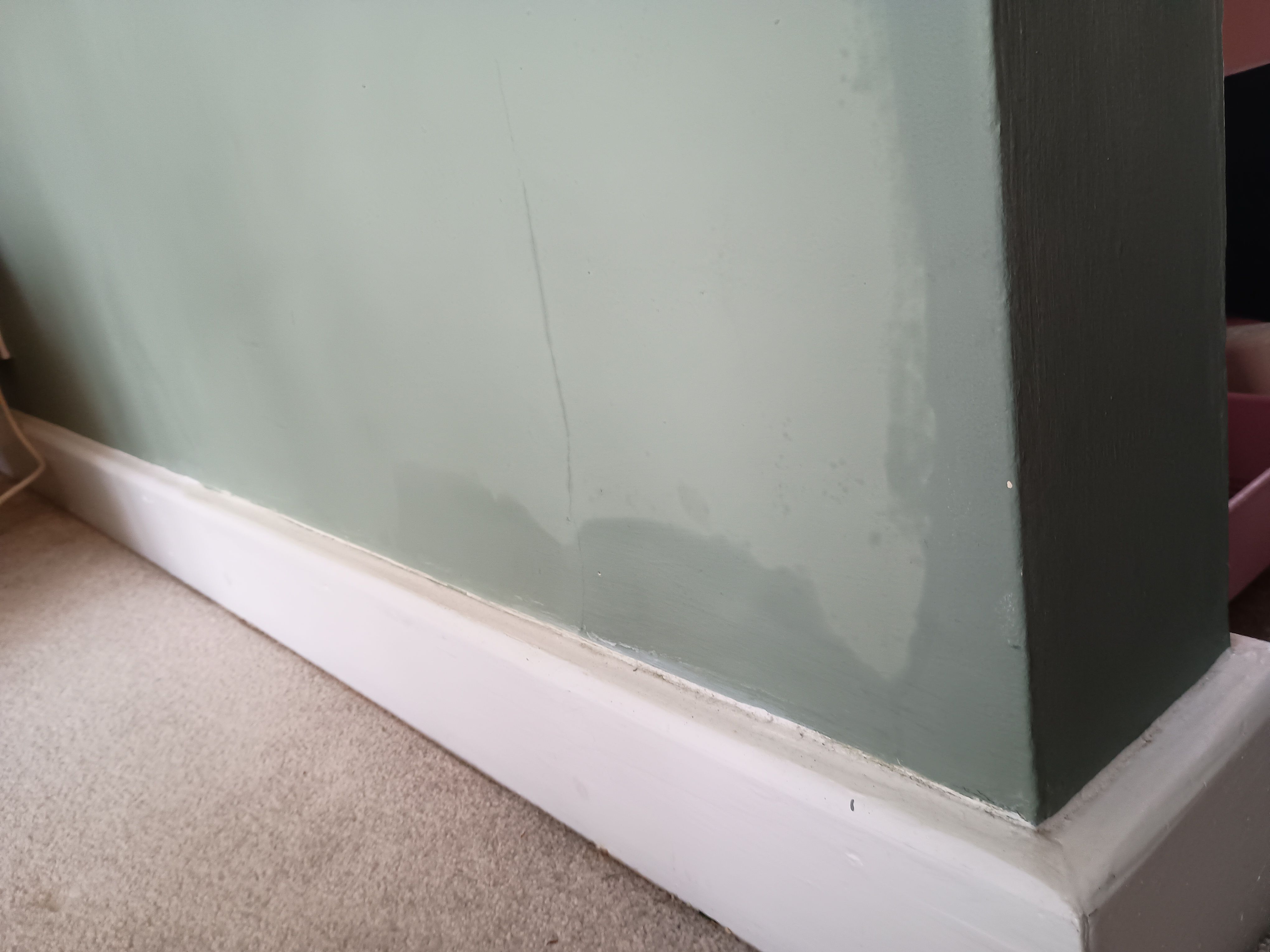 We've had a couple of people look at this and had different opinions. One suggested sanding the paint off the affected areas and using a heater to completely dry out the wall before repainting, while another suggested new damp proofing costing several thousand pounds.