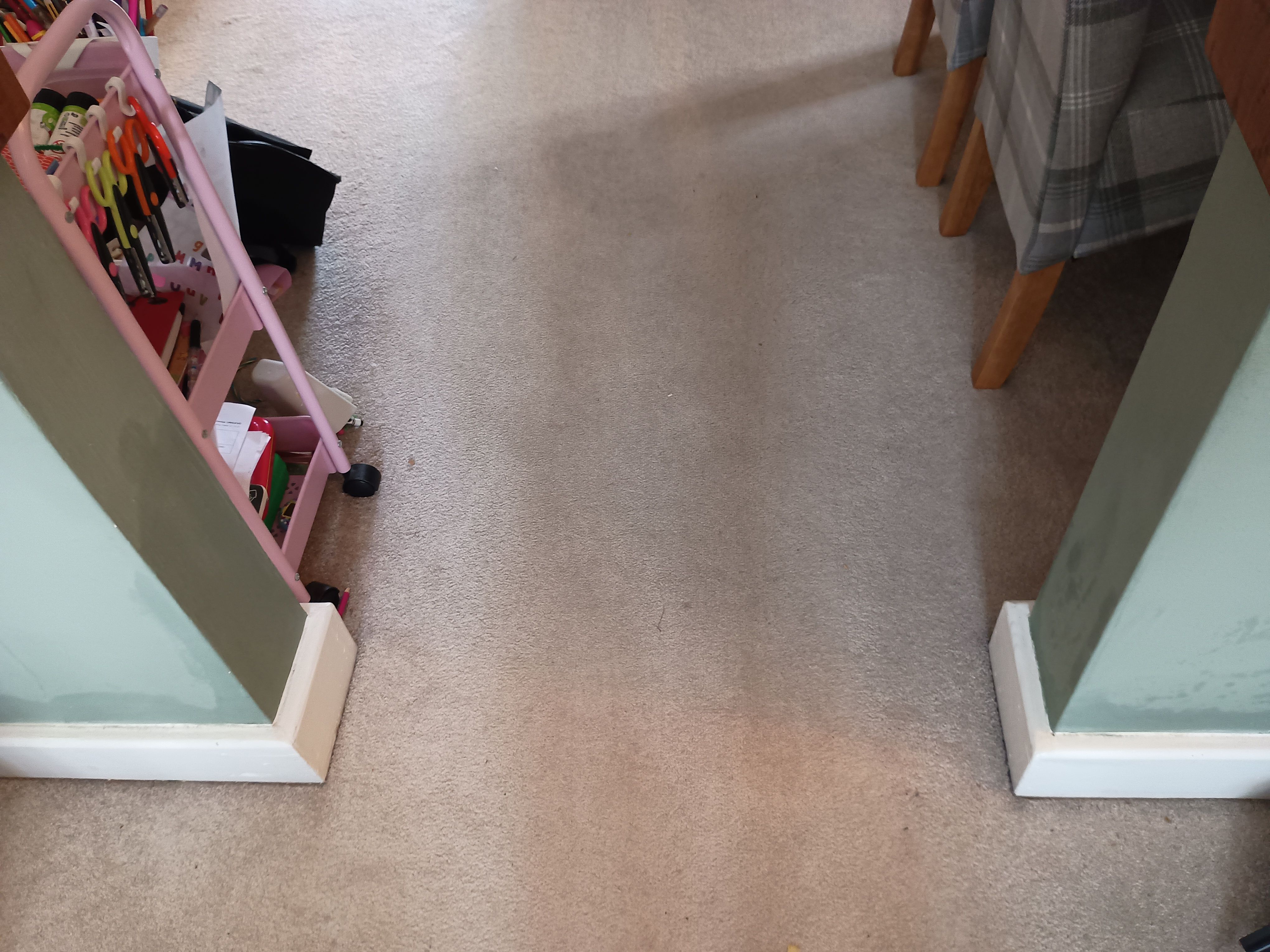 It looks like the moisture is greater heading towards the stairs?