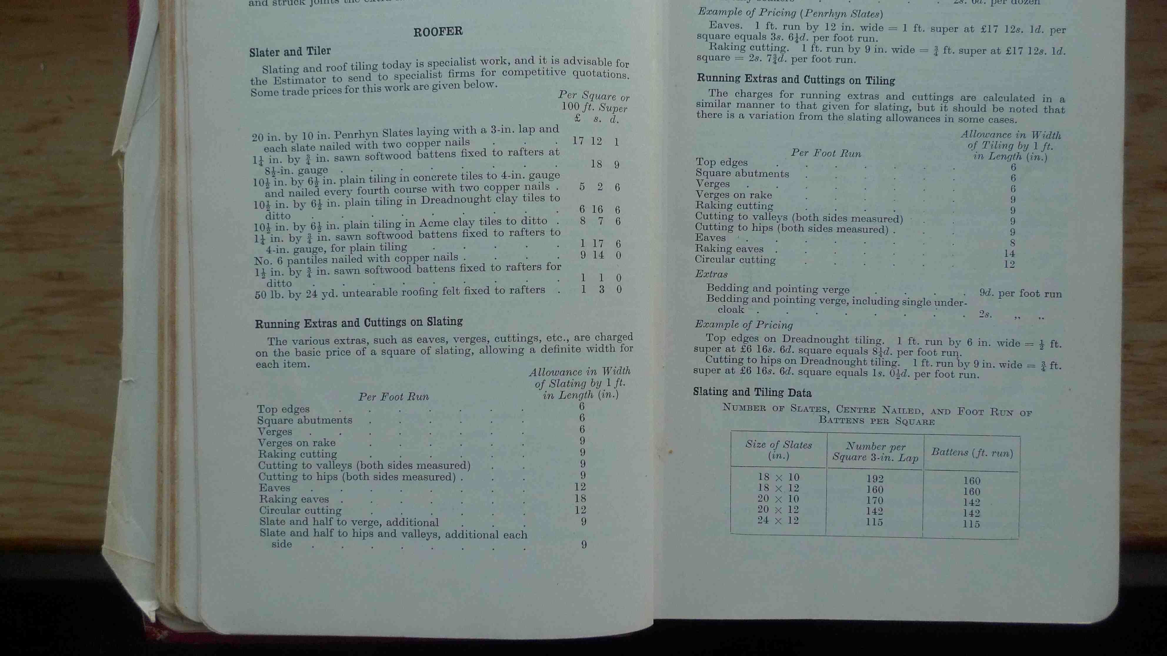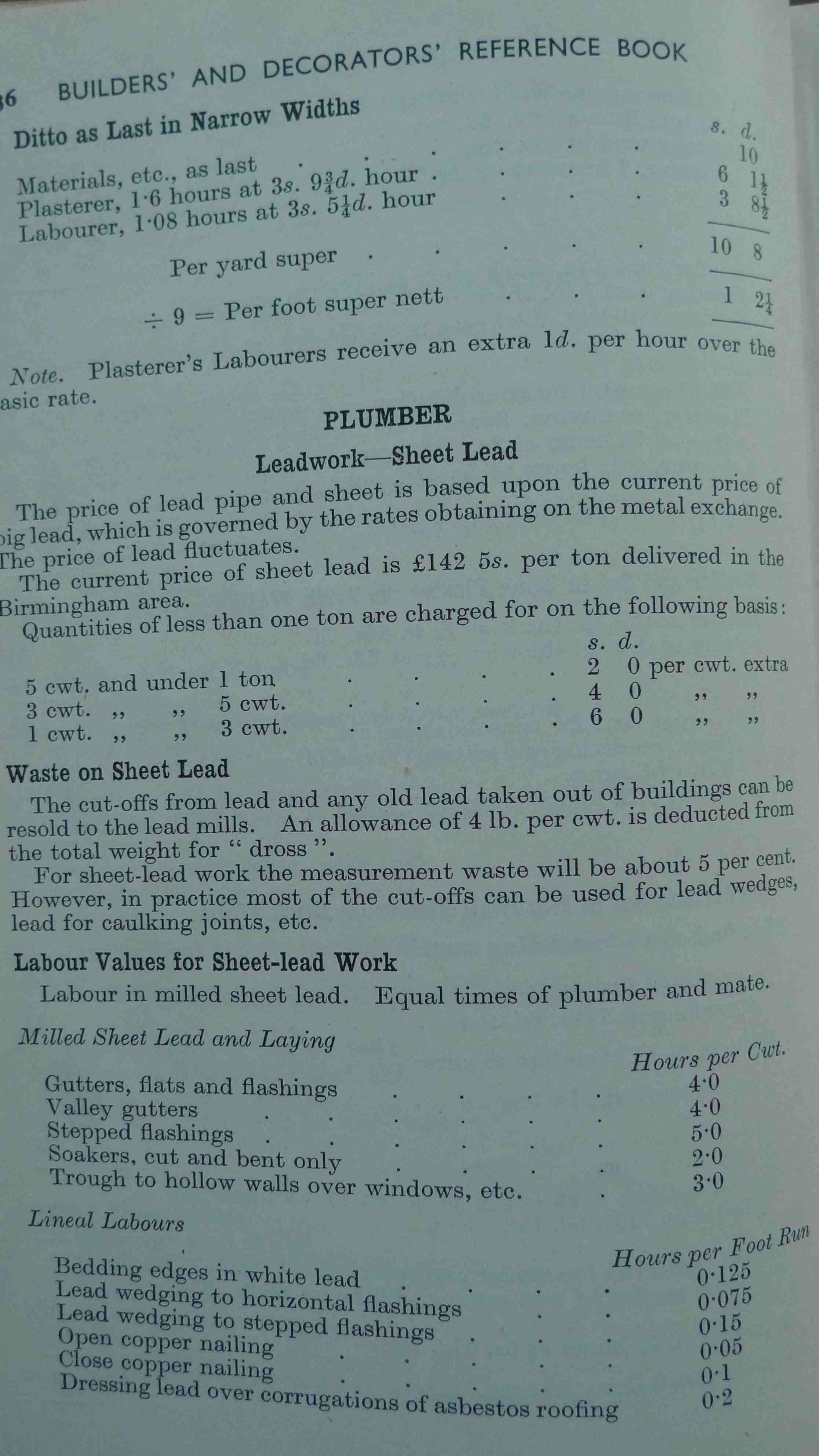2 1/2" thick & 1.5kg of all the knowledge needed to be a builder. In 1958. If you wanted to know roofing lead was £142 5s per ton in Birmingham, it's in there.