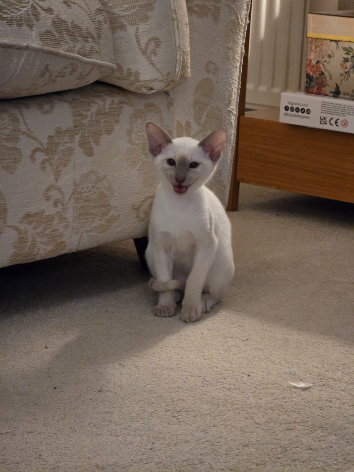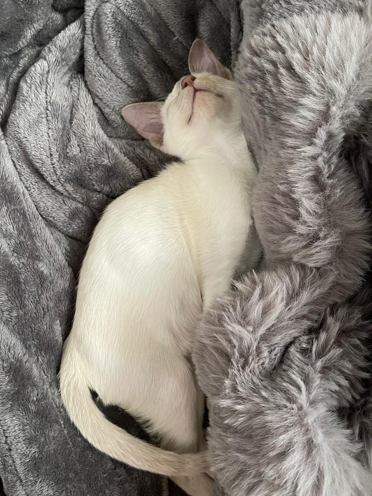 My first experience of a kitten and first experience of a Siamese. She is very engaging. When meeting someone new, she goes over chats and stares them right in the eye. Surprisingly confident and more so than I would have thought for 12 weeks old.