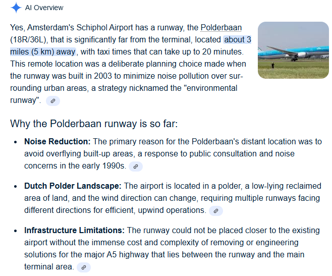 Some of the KLM City Hopper flights land at the Polderbaan runway which takes a while to get to the terminal. This can cause connection issues and the stewards usually announce the terminal connections on landing according to the passengers on the flight and let them know which gate they need to run to!
