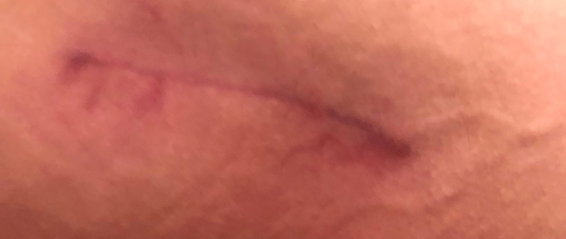 about 3" - no stitches)
