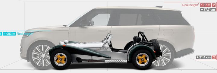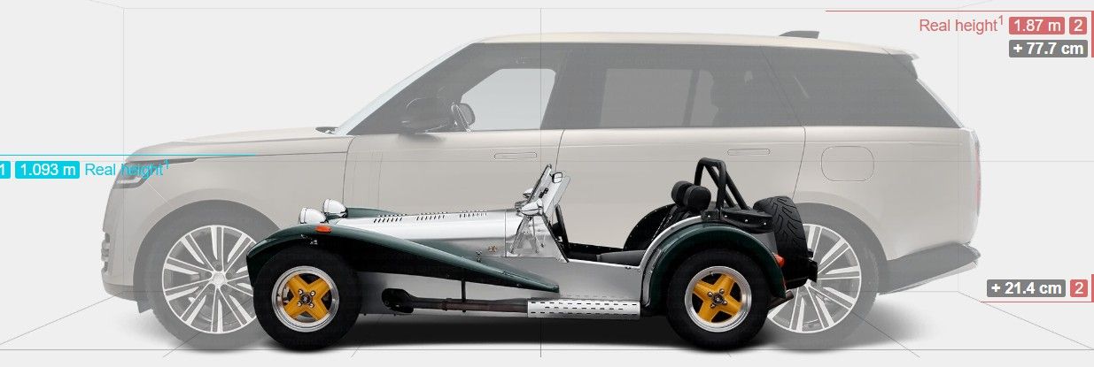I think the Caterham is riding a little high... Parking next to SUVs can be a pain.