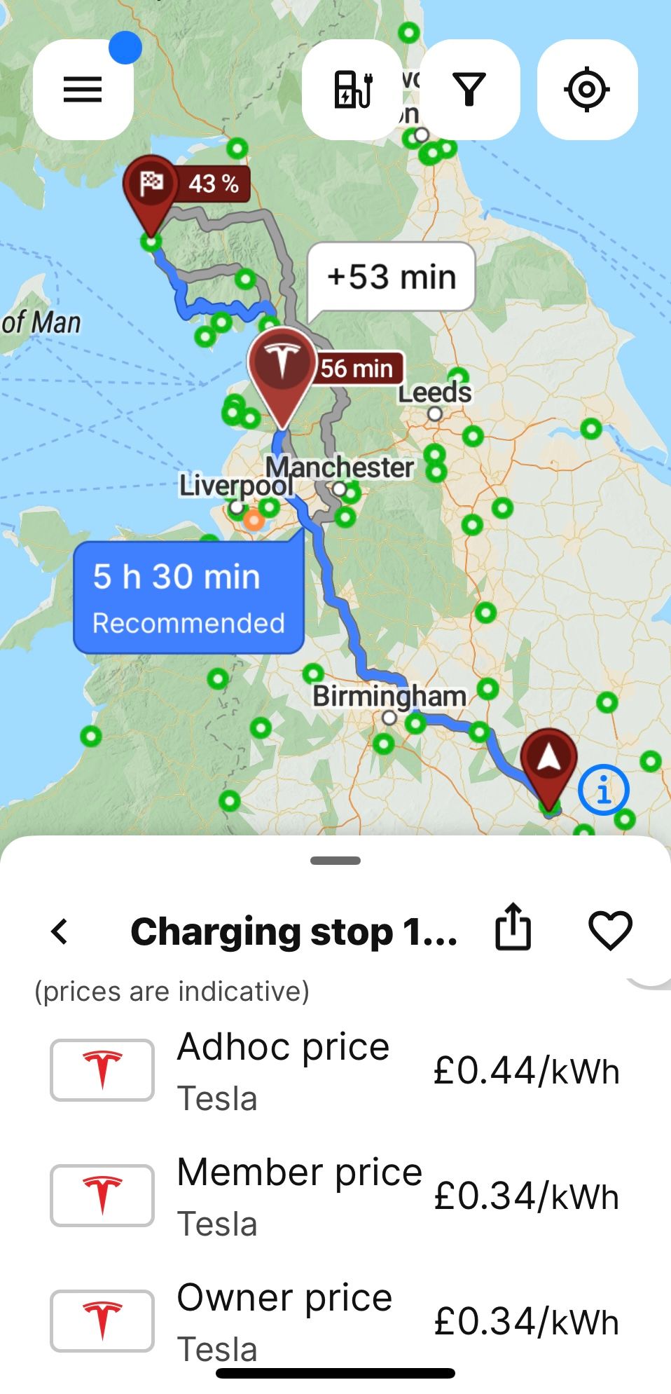 I toyed with this and got the Tesla app set up just in case but ended up looking for decent sized hubs at services where we knew we had access to toilets, could exercise the dog etc.I often drive SE to Harrogate in my Skoda.