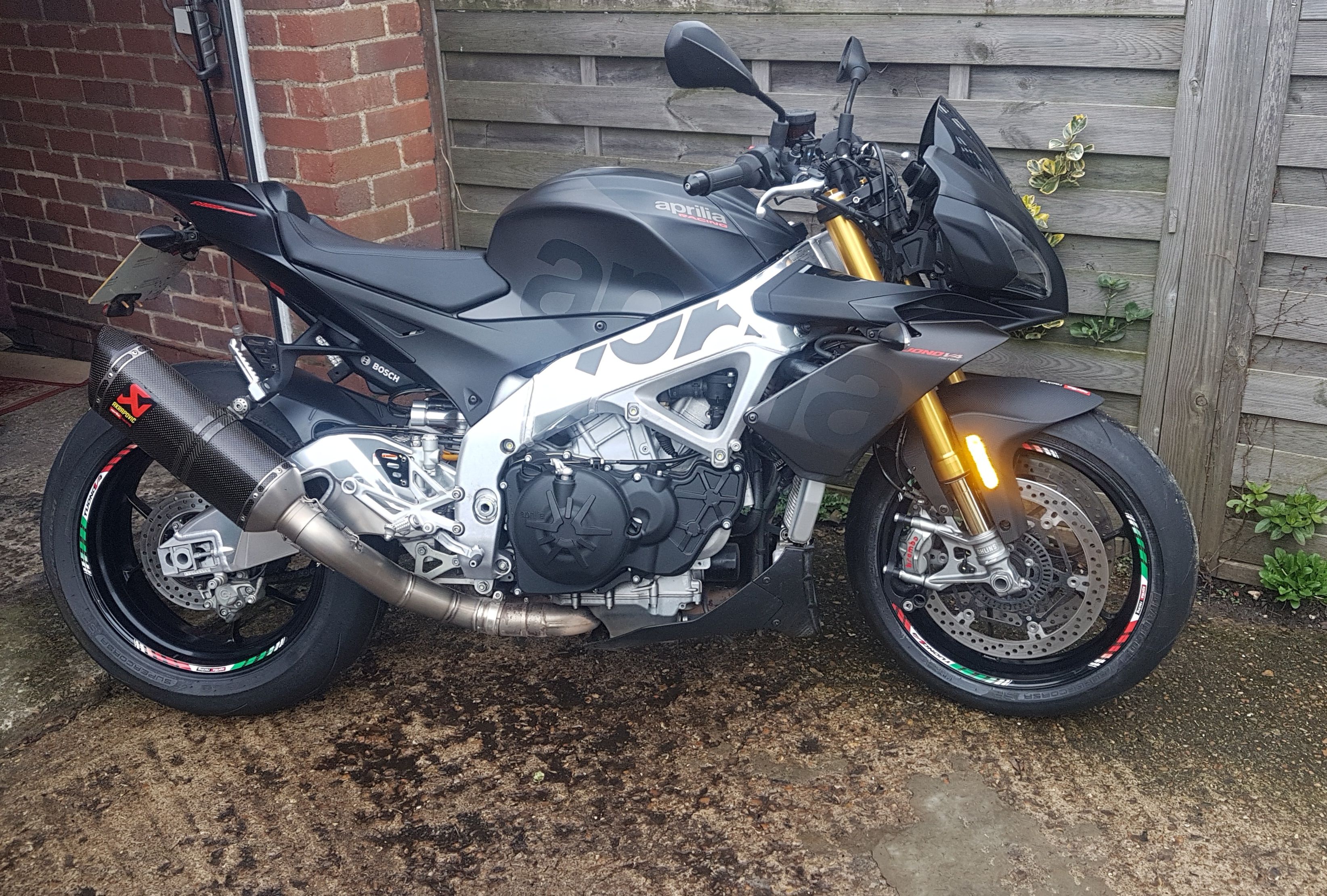 Regularly ridden, 18k mostly summer fun miles and kept in tip top condition. Anything it needed in a service was done, recent chain and sprockets, ohlins front fork rebuild, head race bearings, tappet adjustment. Factory Carbon Acro and Aprilia remap fitted from new. OEM tailpipe also available. LED lighting/DRL upgrade. RoadLoc calliper mounted disk lock + two keys, Heated grips with integrated controller. Quad-lock phone mount. Powerbronze taller screen and original if needed. New battery (Sept 24). Michelin Road 6 tyres. Cool covers mesh seat. Passenger seat and single seat cover. Monimoto GPS tracker.
