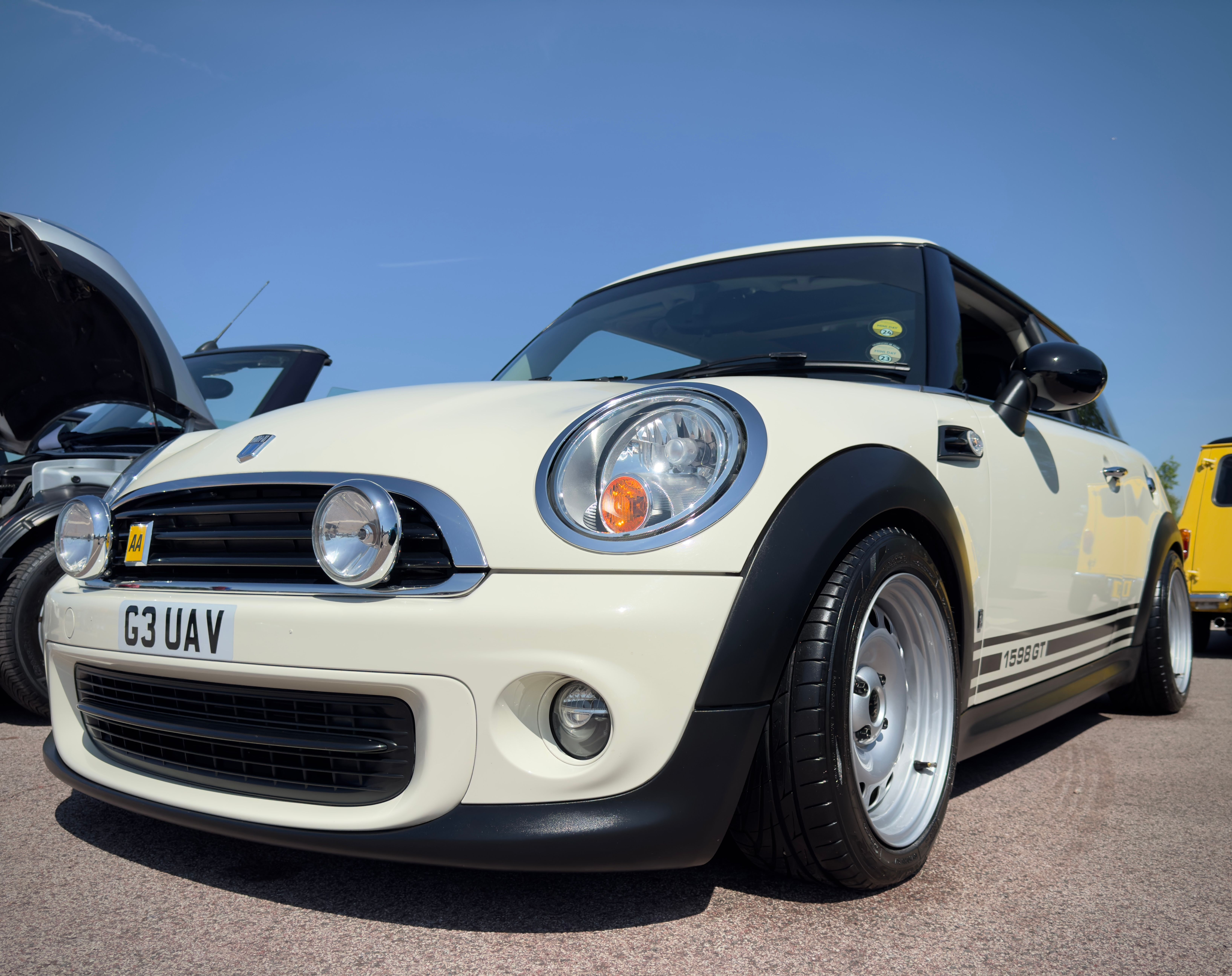 The badges are from Mini spares, but really poor quality. The printed part would fade after 3 months, the rear was originally a Mini Special badge. In the end I designed the centres myself and used my vinyl cutter to make them, so they are a one off. Getting an OG Mini bonnet badge to fit a new Mini is a ball ache too!Did you have the graphics & badges with 1598GT custom made, or does someone stock them?