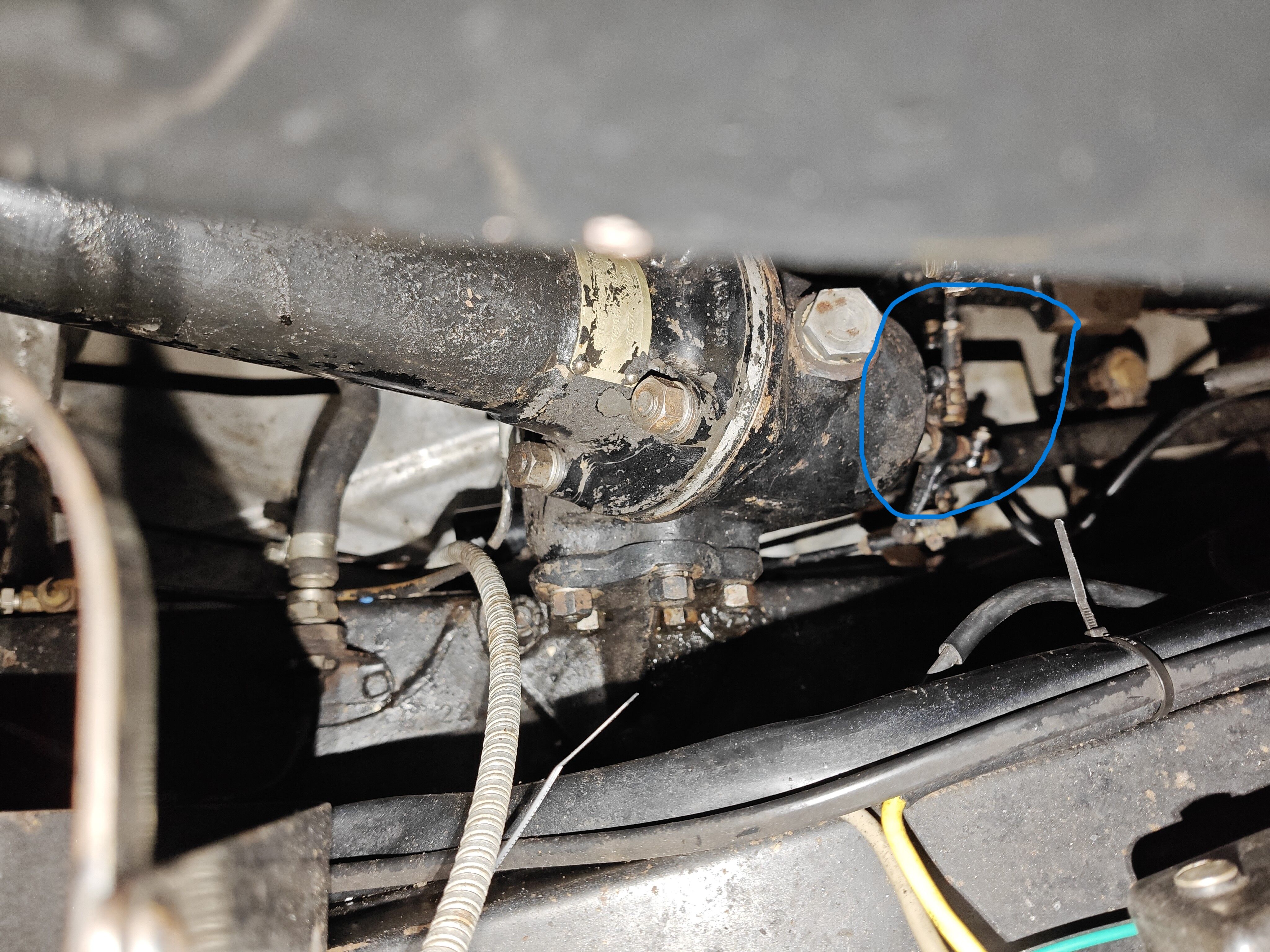 These tubes and wire run right through the steering box to a little "Christmas tree" of levers for the mixture control, hand throttle and ride control (see blue circle). To extract the chrome button at the top, the three tubes need to be lifted out, which means disassembling the Christmas tree and draining the steering box. I am going to sort this, but I'll need a few days to work through it, and probably some dutch courage to start. By the way, I think this is all caused by a roll pin that has moved in the horn switch mechanism (or is that masochism!)