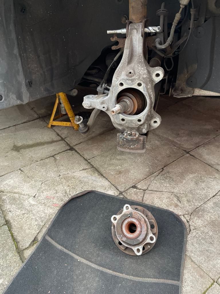 Next front bearing hub removal, new one on the way... Many seized bolts, finally won the battle with no breakage or blood.