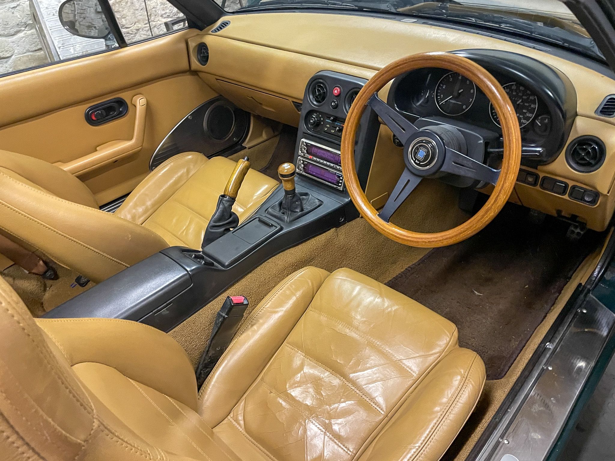 Regarding the retrim, if Mazda just sold new OEM tan seat covers I'd go with that but unfortunately they don't. Lots of aftermarket ones around but none of them seem to fit properly. So I suspect I'll end up going to a trimmer but I don't want it to look too posh if you know what I mean. Just needs to suit the car and be smart. I don't know how obvious it is on the pics but the finish on the seats at present is far too glossy and some of the crack repairs are really nasty. It's presentable enough for now but certainly something on the long term to-do list