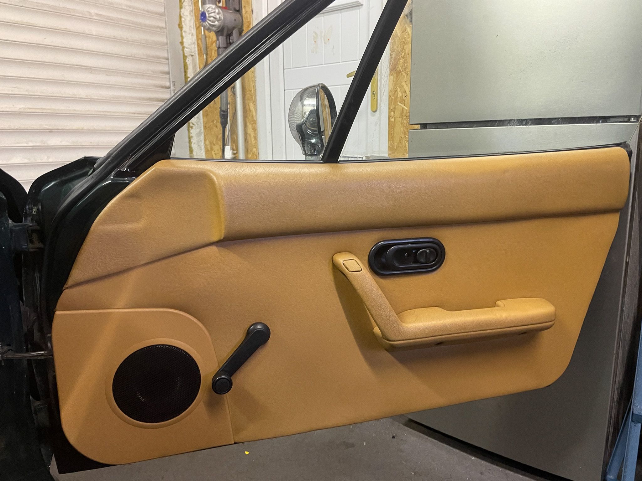 The faulty driver side window prompted me to put manual windows in. The driver side regulator had been replaced with a nasty generic one that was no longer functional. The passenger side one was original and still worked but not that well so instead of spending a lot of money on two new regulators which never last that long anyway, I decided to use the manual regulators from my scrap car. I like this because it simplifies things but it did mean I needed to get a blanking plate for the window switches (just after I’d eliminated blanking plates from the dash!) and the teardrop speaker door cards that my car came with had to be replaced as they clash with the window crank handles.