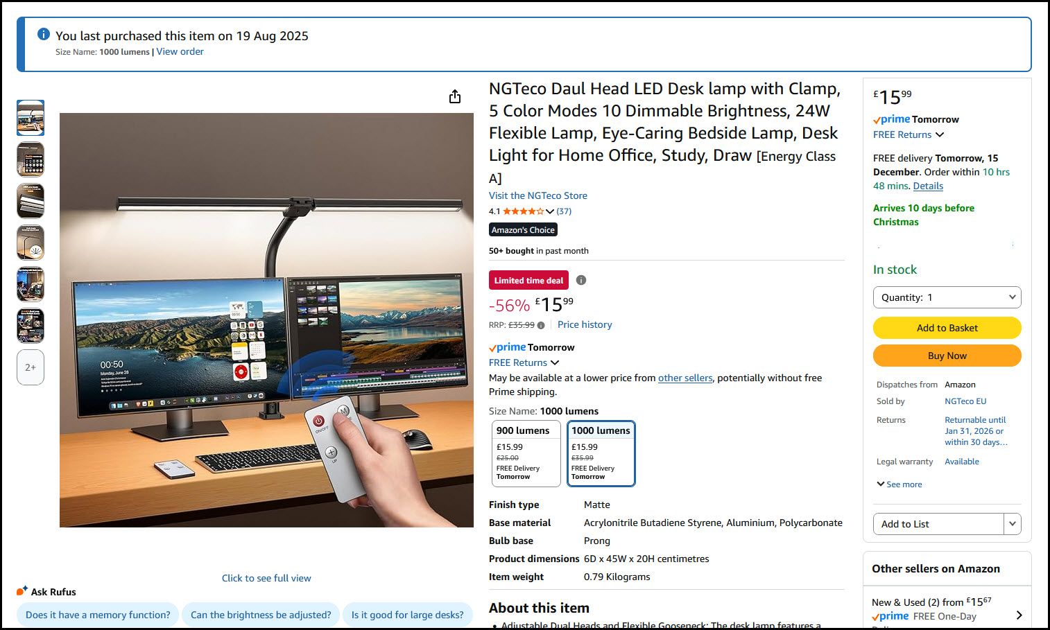 If I have to do something fiddly on my desk you can then swing the arms round to light the front of the desk.