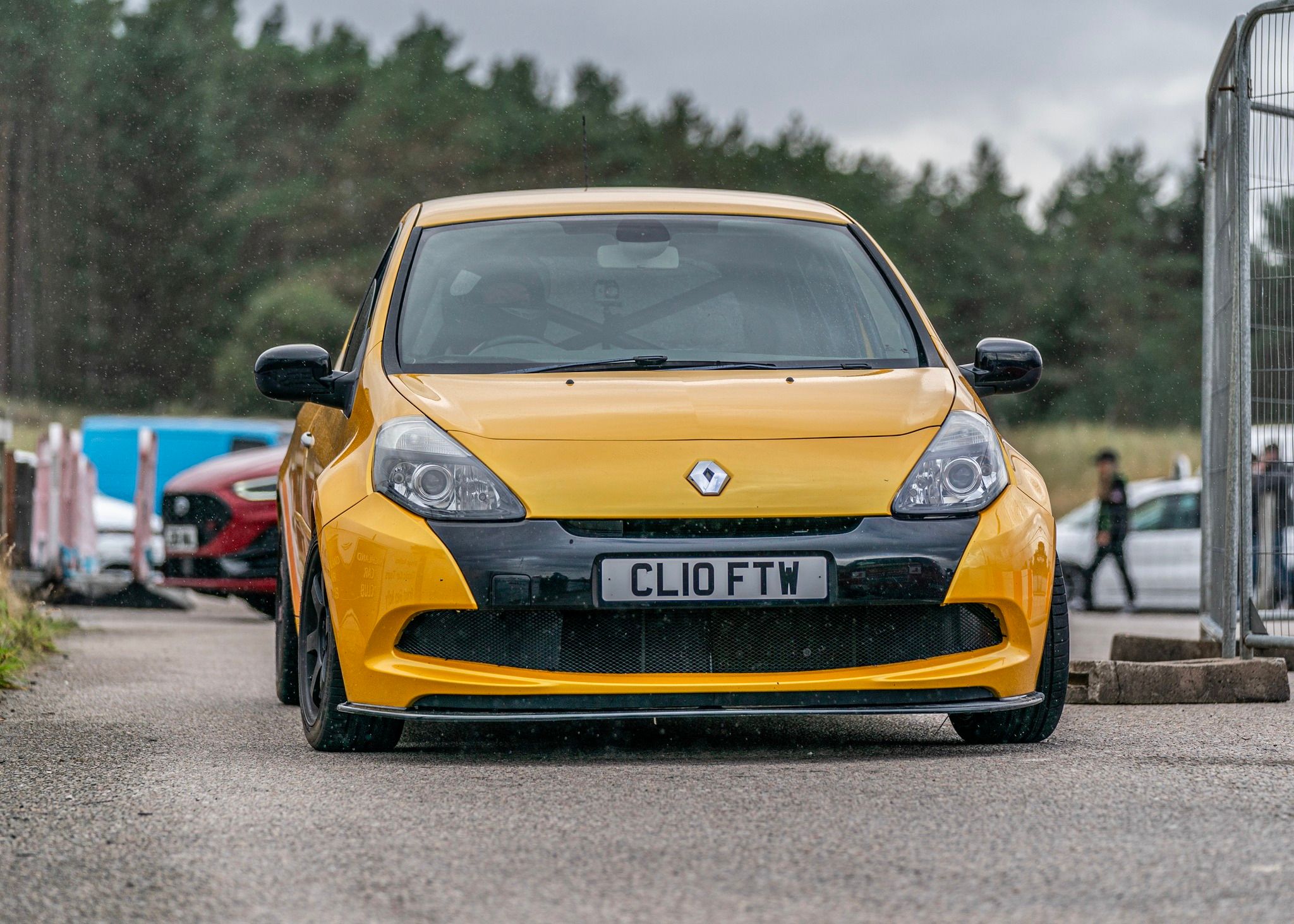 Its a 2010 liquid yellow clio rs200, previous owner had already fitted kwv3 coilovers, and had it setup by Mark Fish, it came stock with the recaro seats but I fairly early on sold those and fitted a pair of mirco GT buckets, primarily because even on street tyres i was falling out of the recaro's under heavy cornering, they are also worth a lot and the money went towards the seats and a rear roll cage. At that point not much else had been done to it although i stripped the rear out fairly early on.