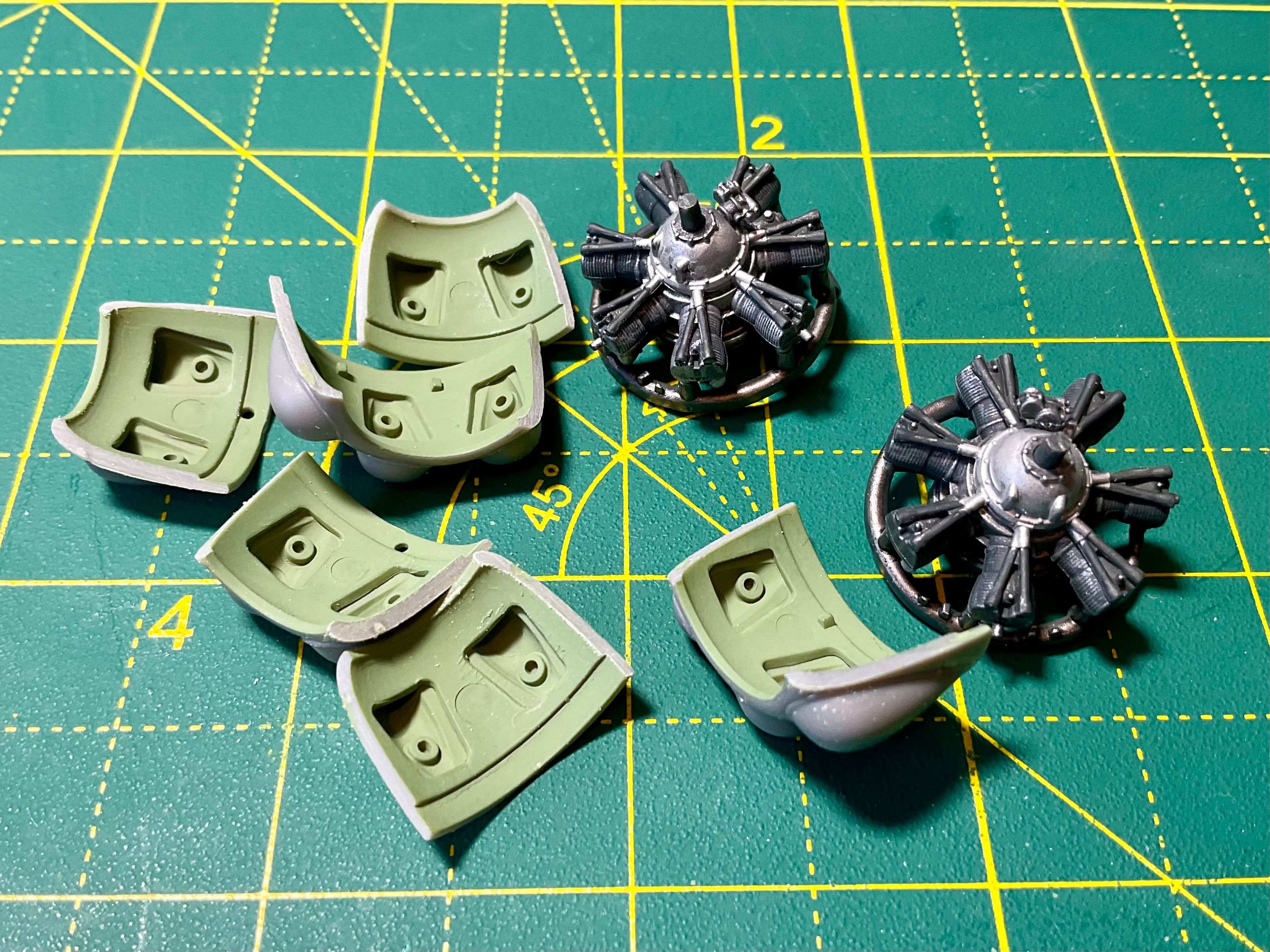 I painted the engines and assembled the covers before I started work.