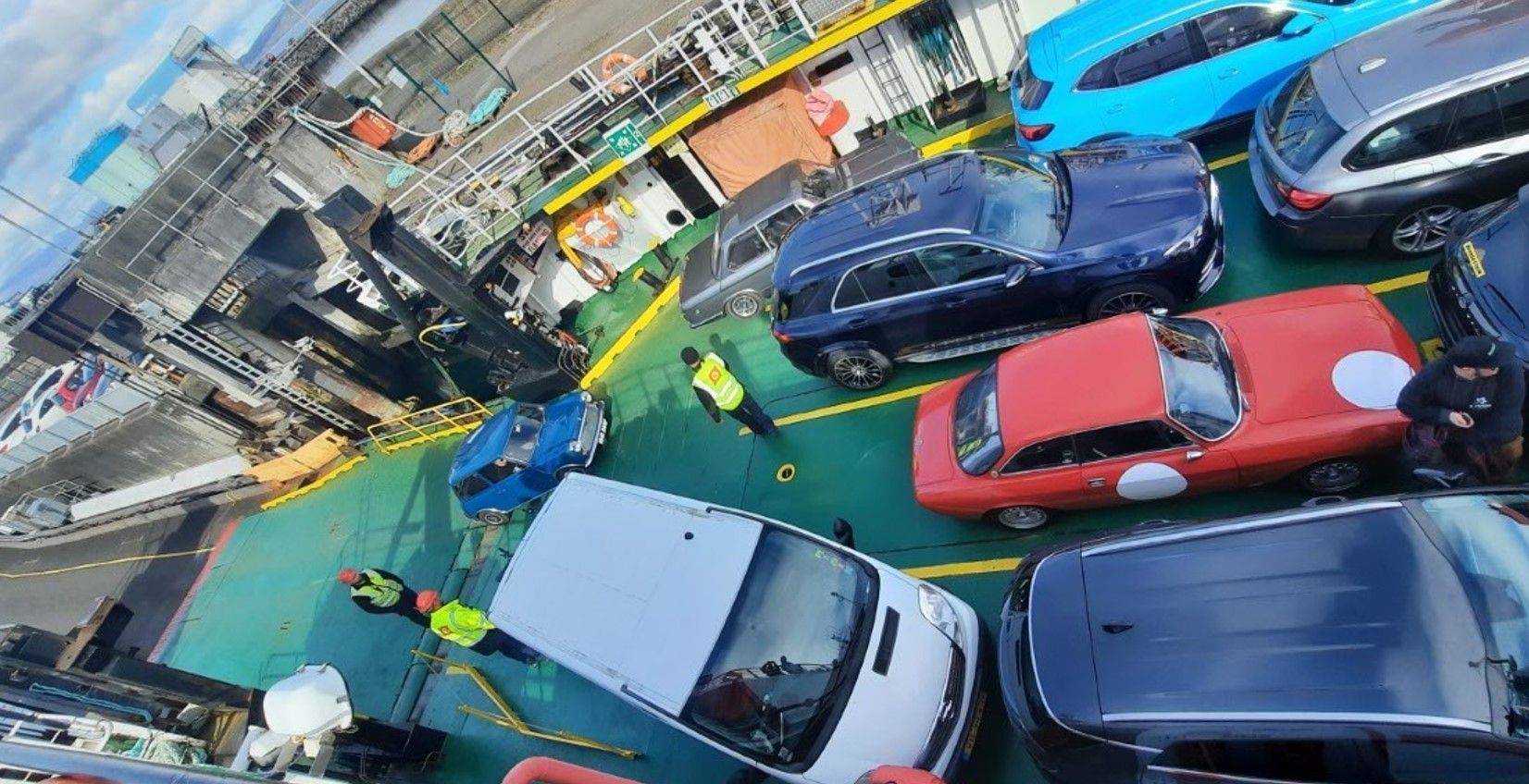 From the first ferry we had the high speed flowing A830 with a quick glance over to see the magnificent Glenfinnan viaduct on route to Mallaig, to then catch the second ferry to Skye. We hadn't booked and went straight into the waiting queue slowly losing all hope of making it on as we watched the ferry getting loaded up. Then from nowhere our tickets were scanned and we were waved onboard. They squeezed us on with the little mini just fitting in at the back, but they then even proceeded to squeeze on another huge 80s Landrover.