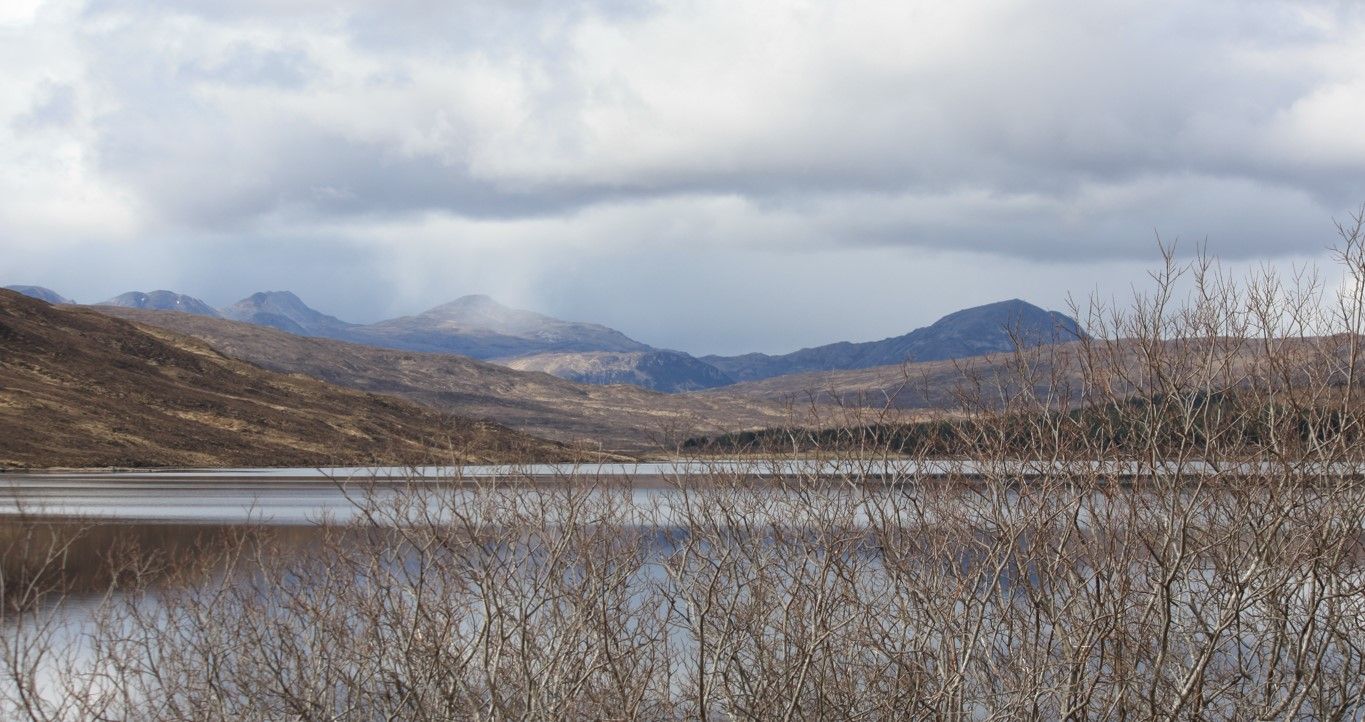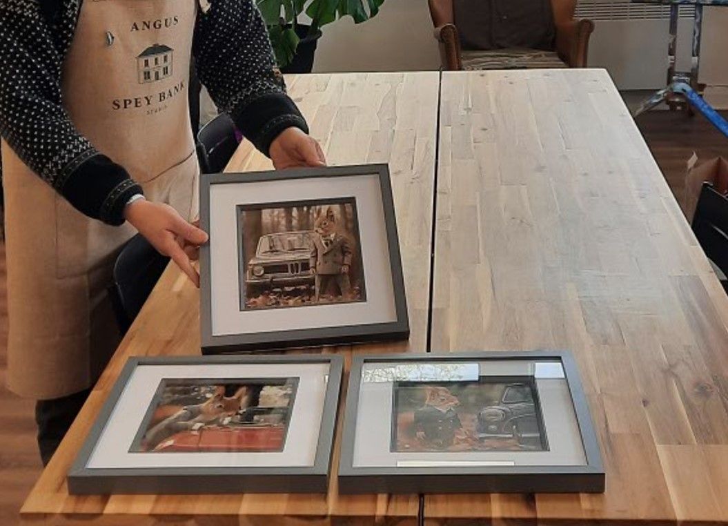Meanwhile, in the BMW, I took a slower pace on a direct route (1hr,30 ish) to Grantown-On-Spey. Stopped on the way for a walk around Loch a'Chroisg and had time to pop into a local art Gallery to commission some Squirrel prints of our cars!