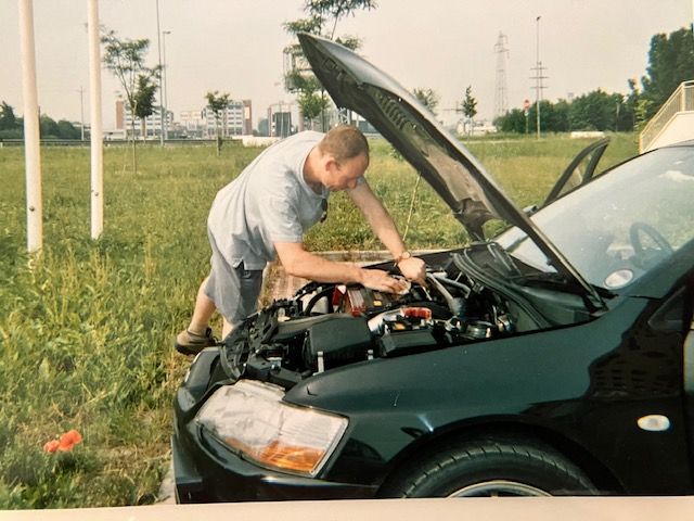 In Italy, checking the oil in deference to the absolute pasting it had on the Autostrada the previous day. I loved driving in Italy back then, it was madness of the highest order, and felt like a spiritual home to me! laugh