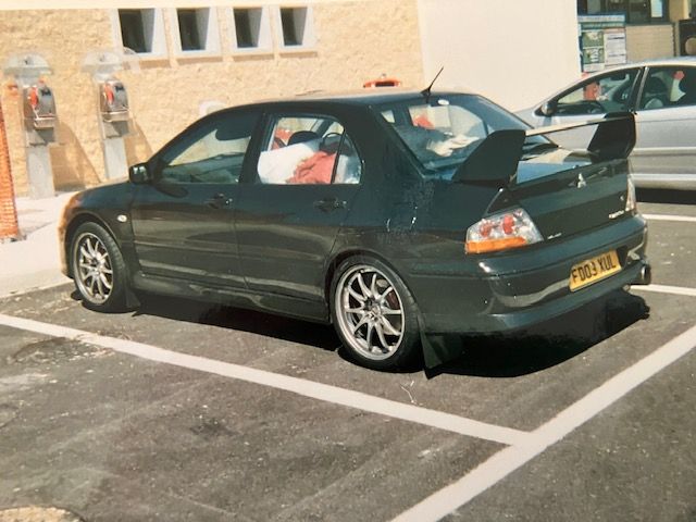 2003 Evo 8 GSR, 8k miles, 8 months old at time of purchase. I must have had it for a little while when I took that pic, because it was totally standard when it came to me, and it's got the I8" Volks CE28 N LEs on there in that pic. Which I put on in preparation for an AP big brake kit. It was also upgraded to 330 brake with a Ralliart ECU and HKS Silentpower exhaust with de-cat in pretty short order. This car came through Intercar imports in London, after being the daily drive of a car collector who owned about 40 vehicles including a Miura amongst other expensive exotica.