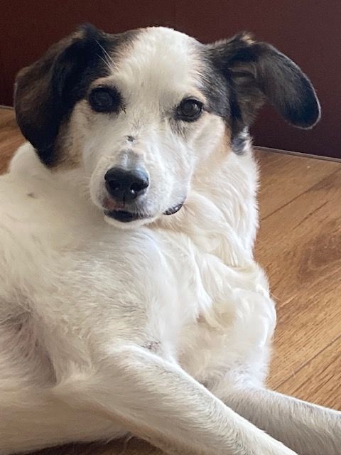 Beth. 8 months old. Asleep at my feet as I write this. Bluffed her way into a border collie sanctuary in Northampton with her false nose and glasses. She's essentially a Jack Russell on stilts. She's the apple of my eye and there's nothing I wouldn't sell or remortgage if I didn't have the money to pay a vet bill. She's 15 now, and the day I hope never comes can't be too far away, but she's healthier than she has any right to be given her years. I'm close to tears just typing this and thinking about life without her.