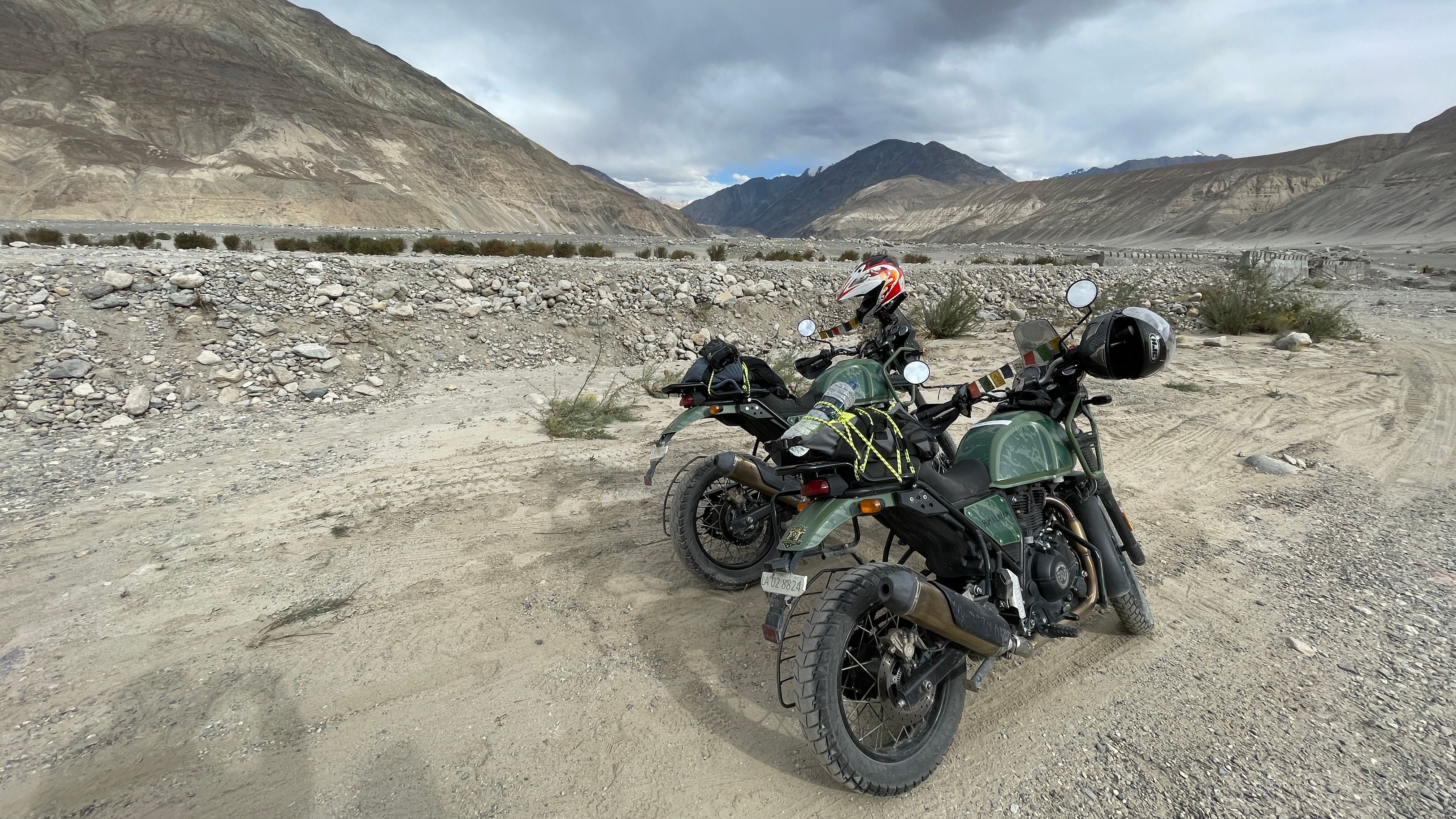 Leh is a beutiful town with a different vibe to other parts of India & on our last trip, a mate & I rented Royal Enfield Himalayans for a couple of days, rode over Khardung La & stayed overnight at Pangong Lake. The mountains are like nothing else on earth, with high desert plateaus & deep rocky valleys. The short bike trip was a highlight of an already epic trip. We decided we needed to do a proper bike trip.