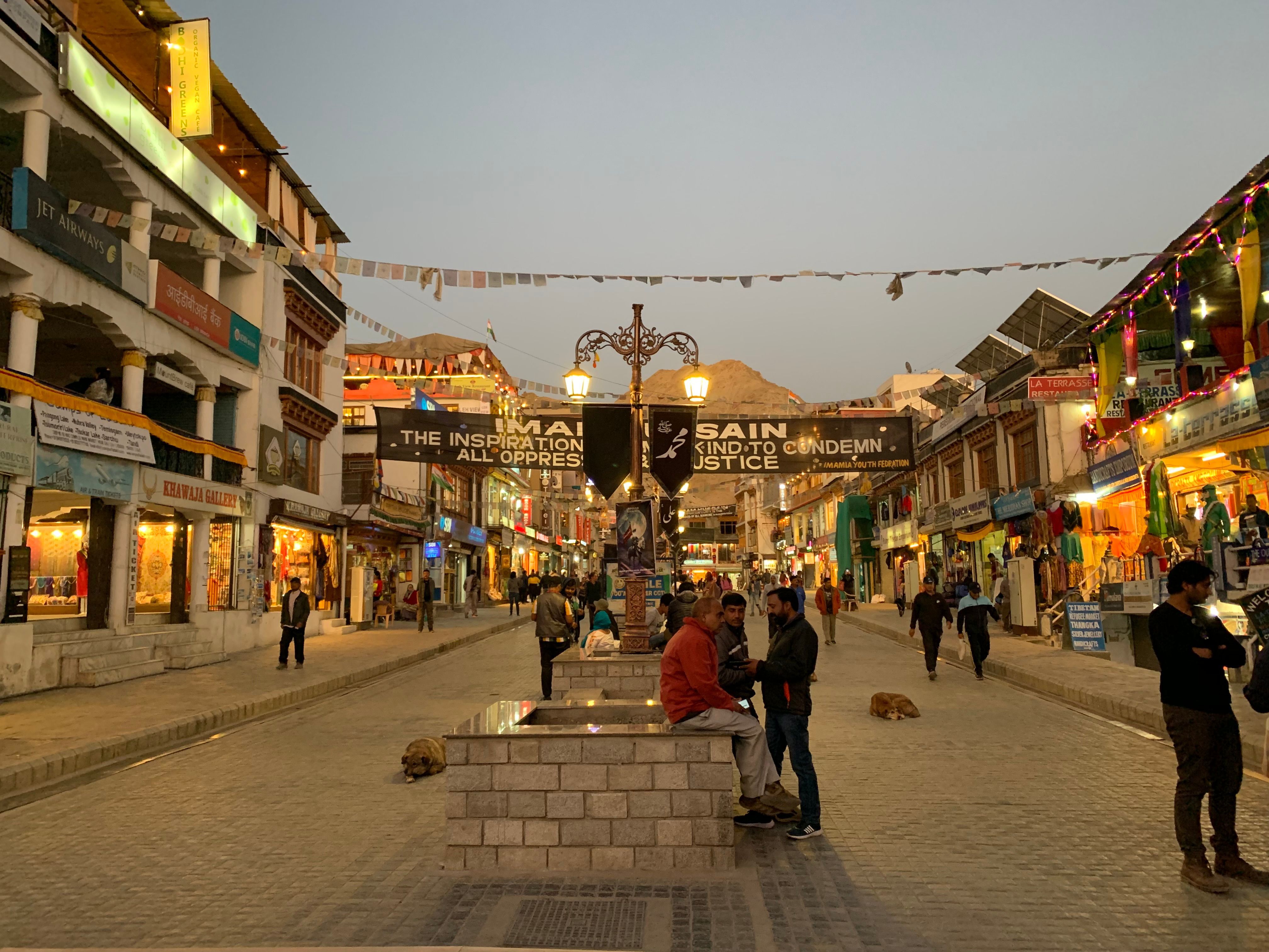 There is lots to see, the old Leh Palace, there's a museum and plenty of shops and restaurants with all variety of Indian and Chinese food plus Tibetan. Leh is an Indian tourist destination, so compare it to a ski village in France - everything is more expensive, especially cashmere and things your parents might buy. You can buy some great Yak leather goods, you'll see Yaks grazing on the way to Pangong Tso.