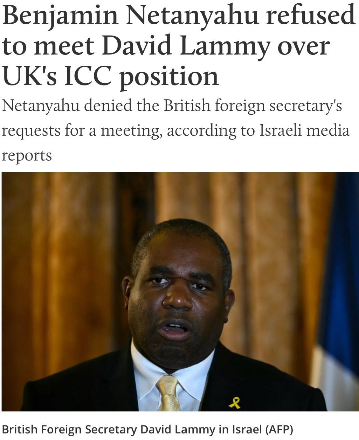A Foreign Office source told Middle East Eye there had been no plans for David Lammy to meet Netanyahu.