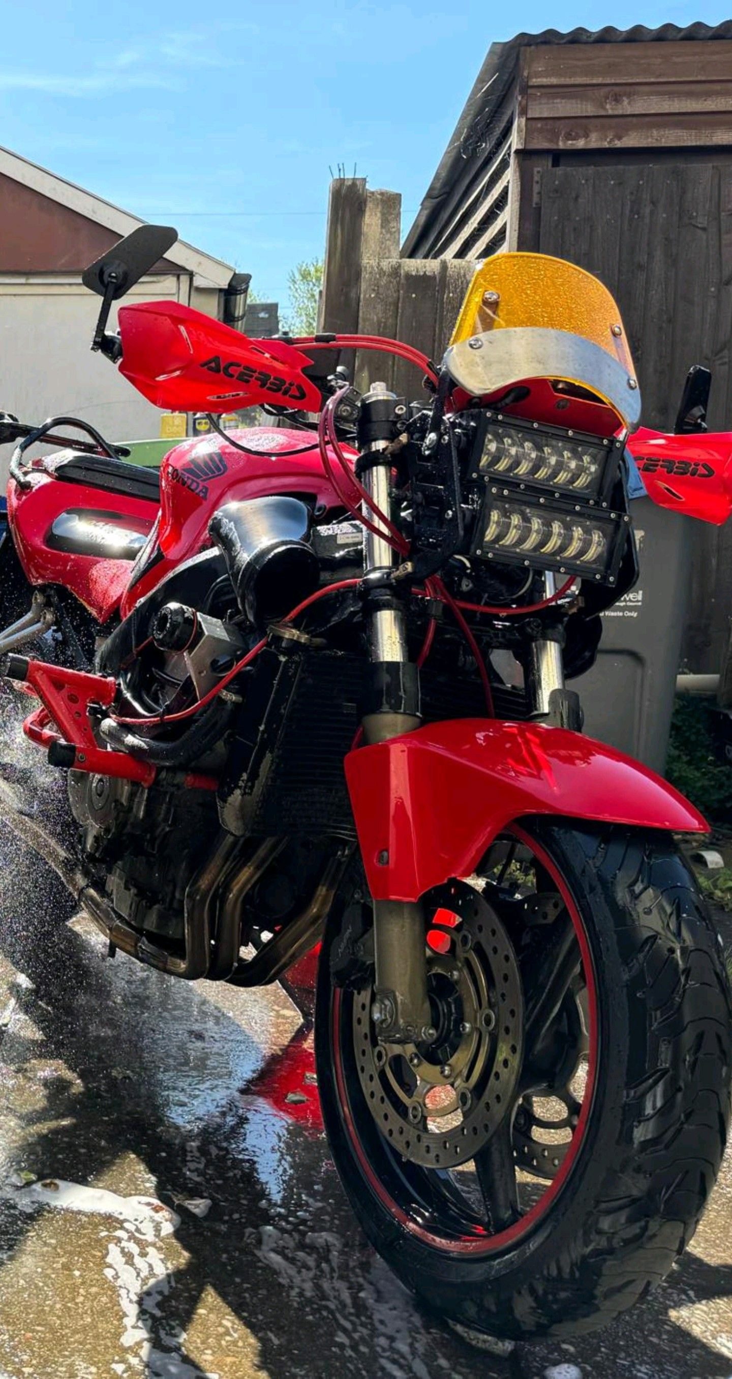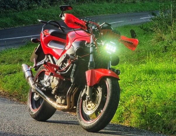 I thought an inline-four 600 was the way ahead, and decided on the CBR600 F4i. These are reliable, quick, cheap for what they are, and are known for smooth power delivery with a screaming top end. Perfect. This model is really popular with stunters too, as the frame and engine are considered pretty much bulletproof, and at some point I want to learn wheelies and drifting (in safe places mind you!). I found a 2001 model local to me in great nick for a fair price, and bought it before I’d even started my CBT. Did the complete ‘zero-to-hero’ package and passed my test in October ’22. TBH the A-licence process was a massive palaver, I was committed but with the time and expense involved in getting a full licence, it’s no wonder the motorcycle industry is in decline!