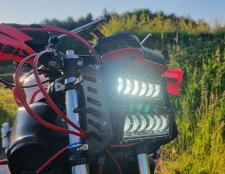 I haven't been stopped by the law yet. Been a bit surprised at that in all honesty especially with the unusual headlight, but around my way the cops are kept pretty busy. I was actually chatting with a copper the other day - he was one of a pair riding Honda CRFs, doing a patrol on a local green space where kids sometimes go to abuse mopeds (been there done that many moons ago). Showed him a pic of the bike and clocking the headlamp he politely enquired 'are those LEDs?' Made me wonder if the unit might be deemed illegal for the road, but then it passed the MOT with no dramas...