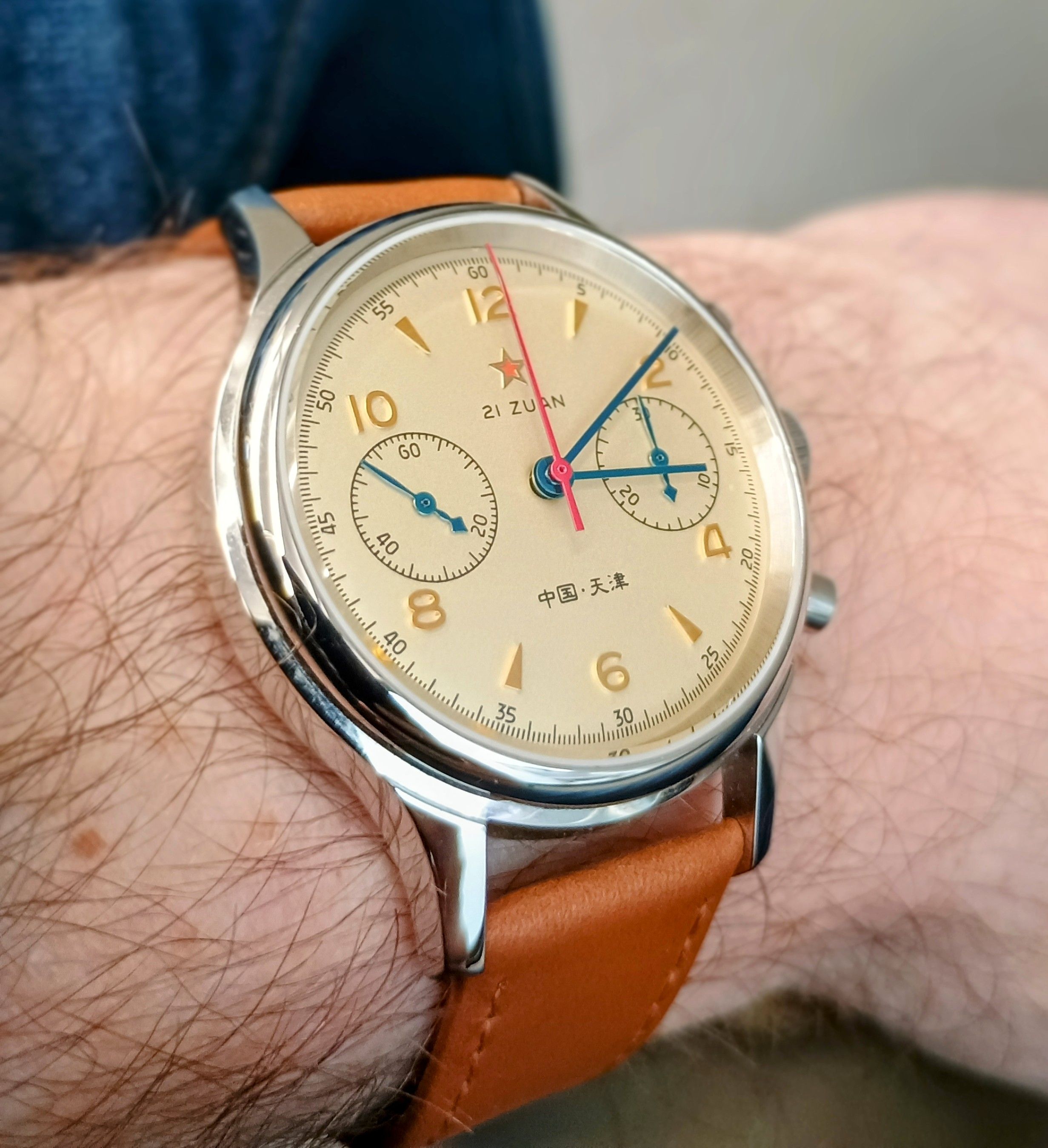 Just got back from the gym with funky coloured lights. This watch is really well finished and reflects all the colours way more than a black dial watch should.