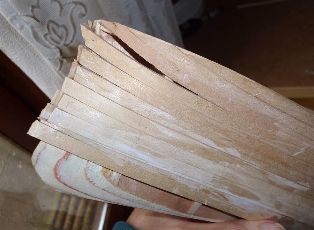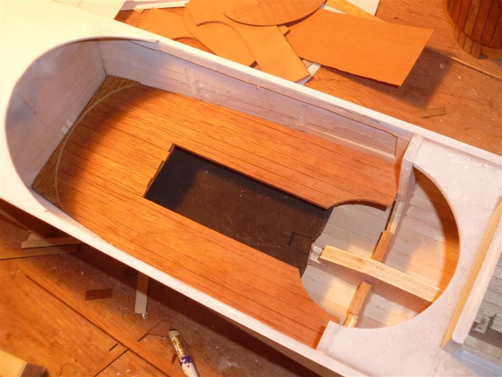 The fore and aft decks are thin plywood, quite easy to do: