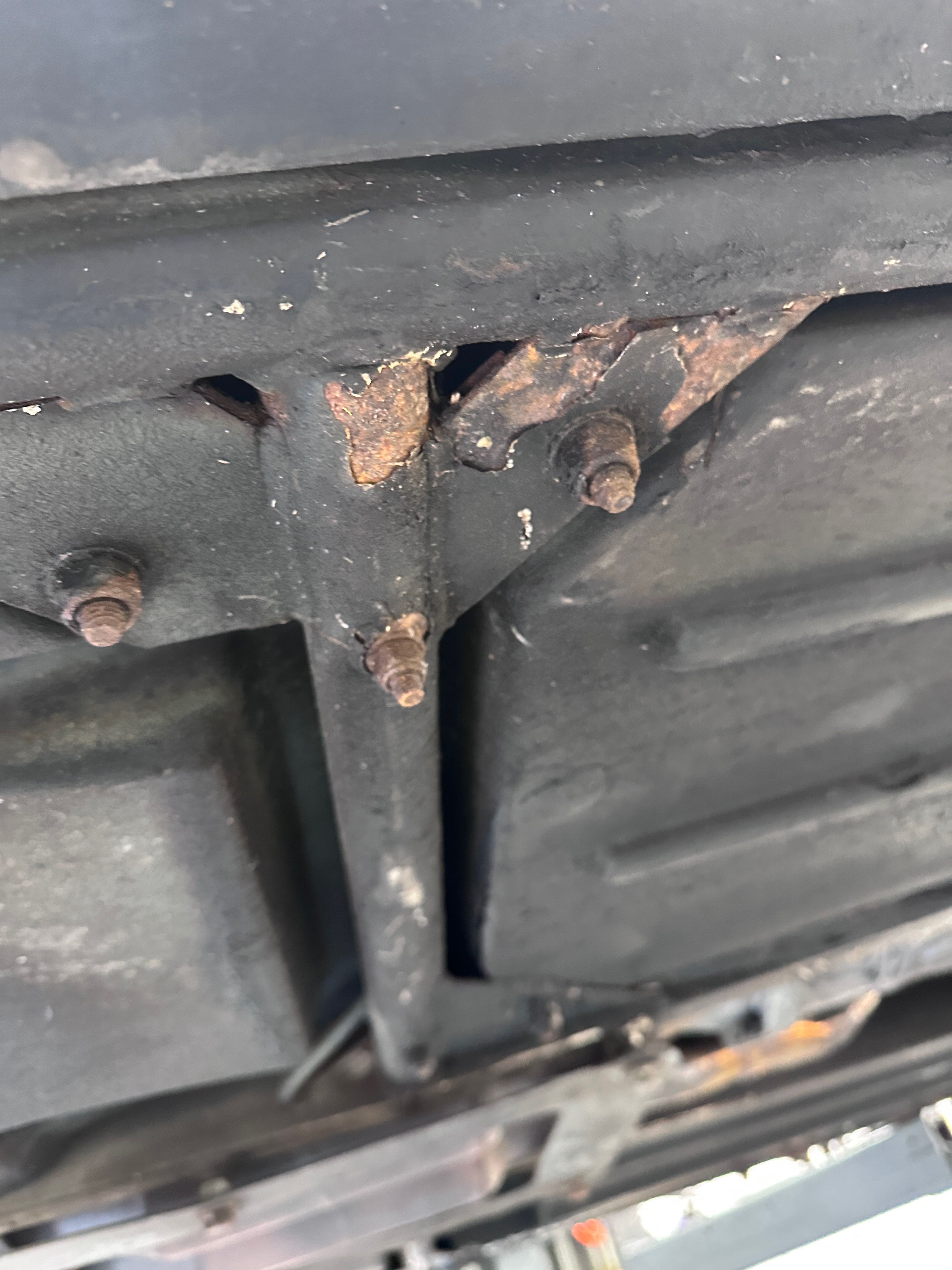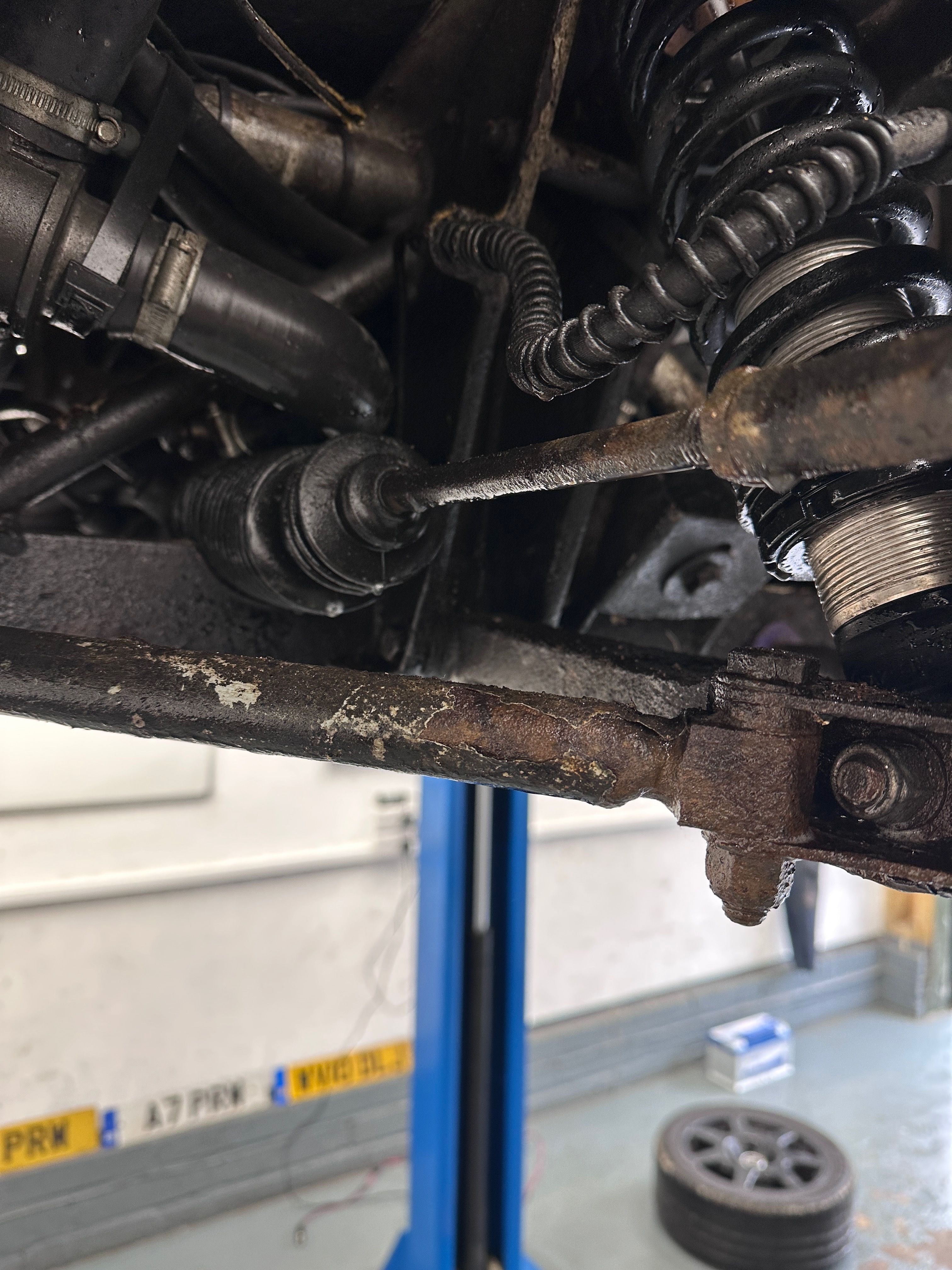 There are some rust patches as you can see. I was thinking drill + wire brush and then some rust treating paint. The aim being to stop it getting any worse. If the car turns out to be a keeper we can do a full chassis resto in the fullness of time. Is this a good strategy? Any particular products I should use?