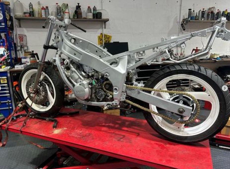 Current state of play is that the bike now has the YZF engine in, electrics and airbox to be sorted shortly.