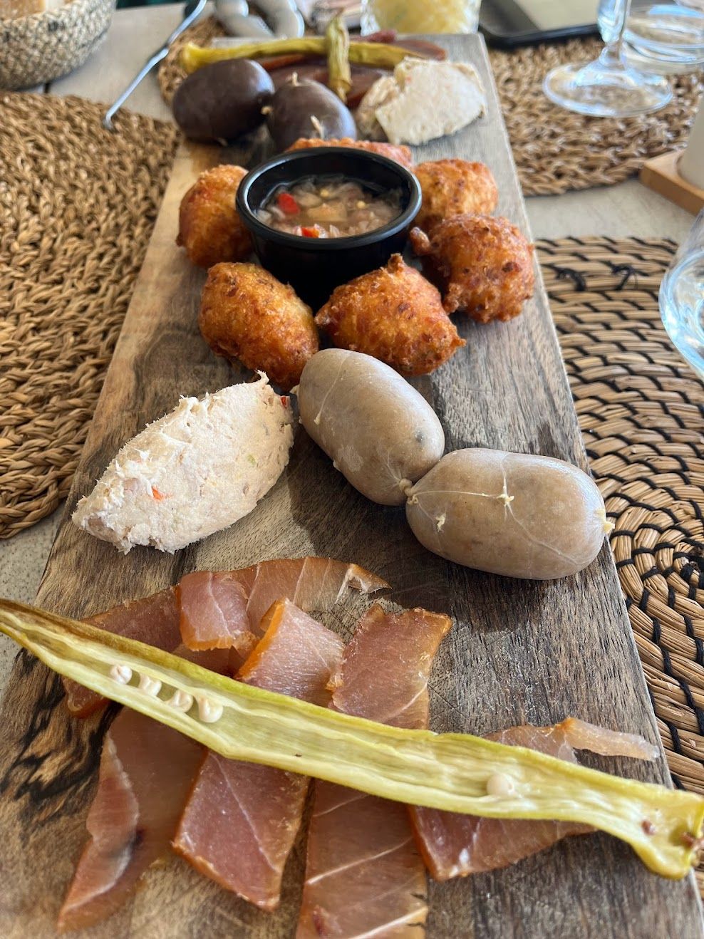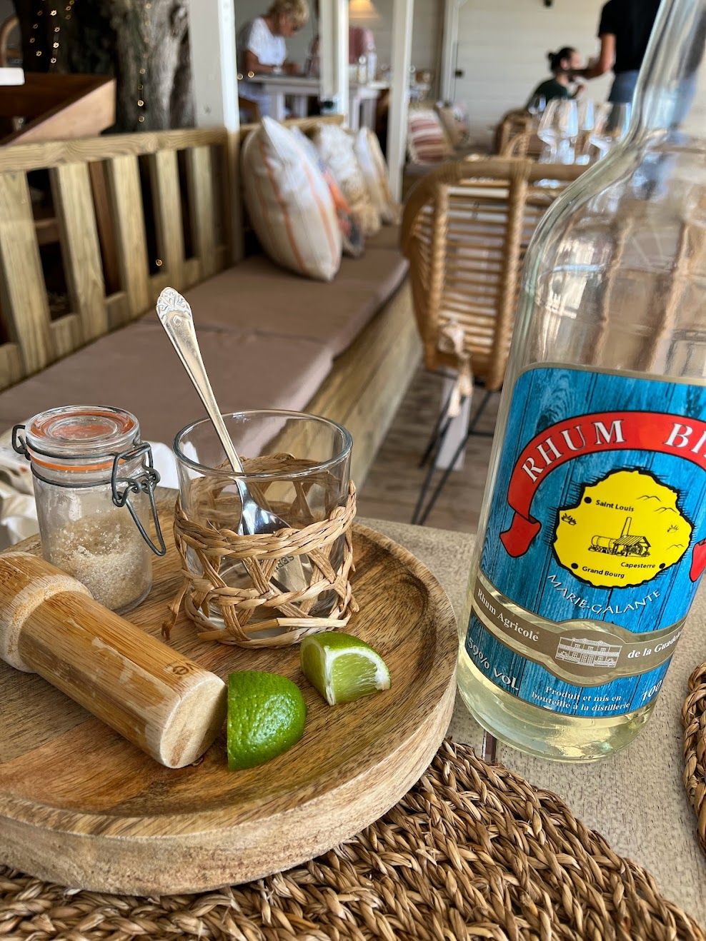 And the rum! There are 13 distilleries across the islands doing Rhum Agricole. This is made from fresh cane juice rather than molasses so the white rum has wonderful grassy, lemongrass, spicy, tropical fruit things going on. The local way to drink it is Ti Punch - they bring some lime, some sugar and a glass with a bottle of 50%+ rhum to your table and you mix your own.