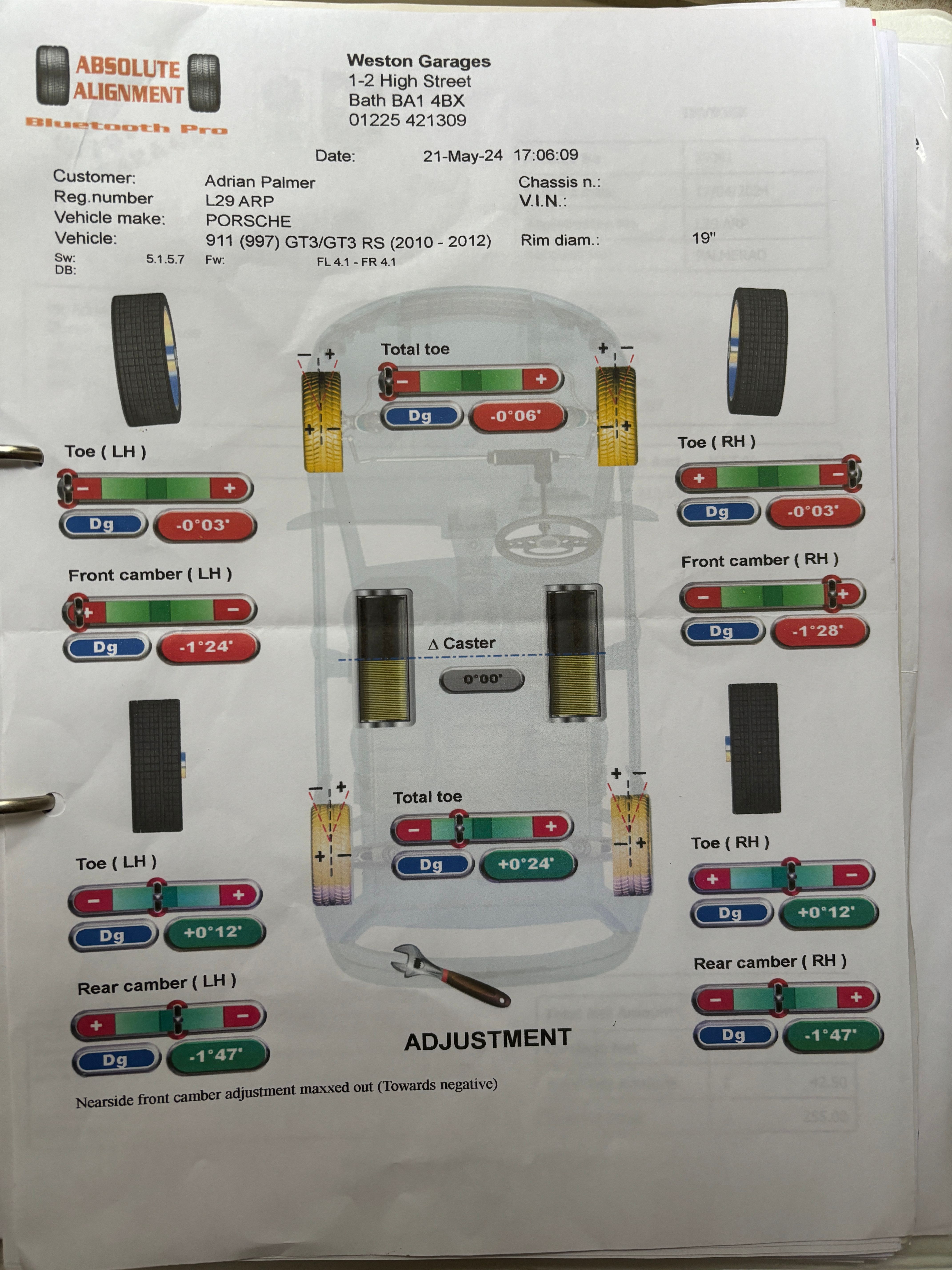 Rear camber I like nearer 2 degrees on the later 911's again fine