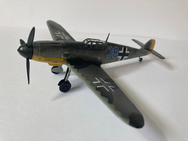 A nice, if rather basic, Airfix kit. It's classified as a Quick Build so lacks some detail but I really enjoyed building it. Like the Focke Wulf Ta152 I built a couple of weeks ago, the aim was to get some more practice with applying Luftwaffe mottle camouflage. It appears that the real aeroplane had its mottle applied by a sponge rather than sprayed - so I did the same.