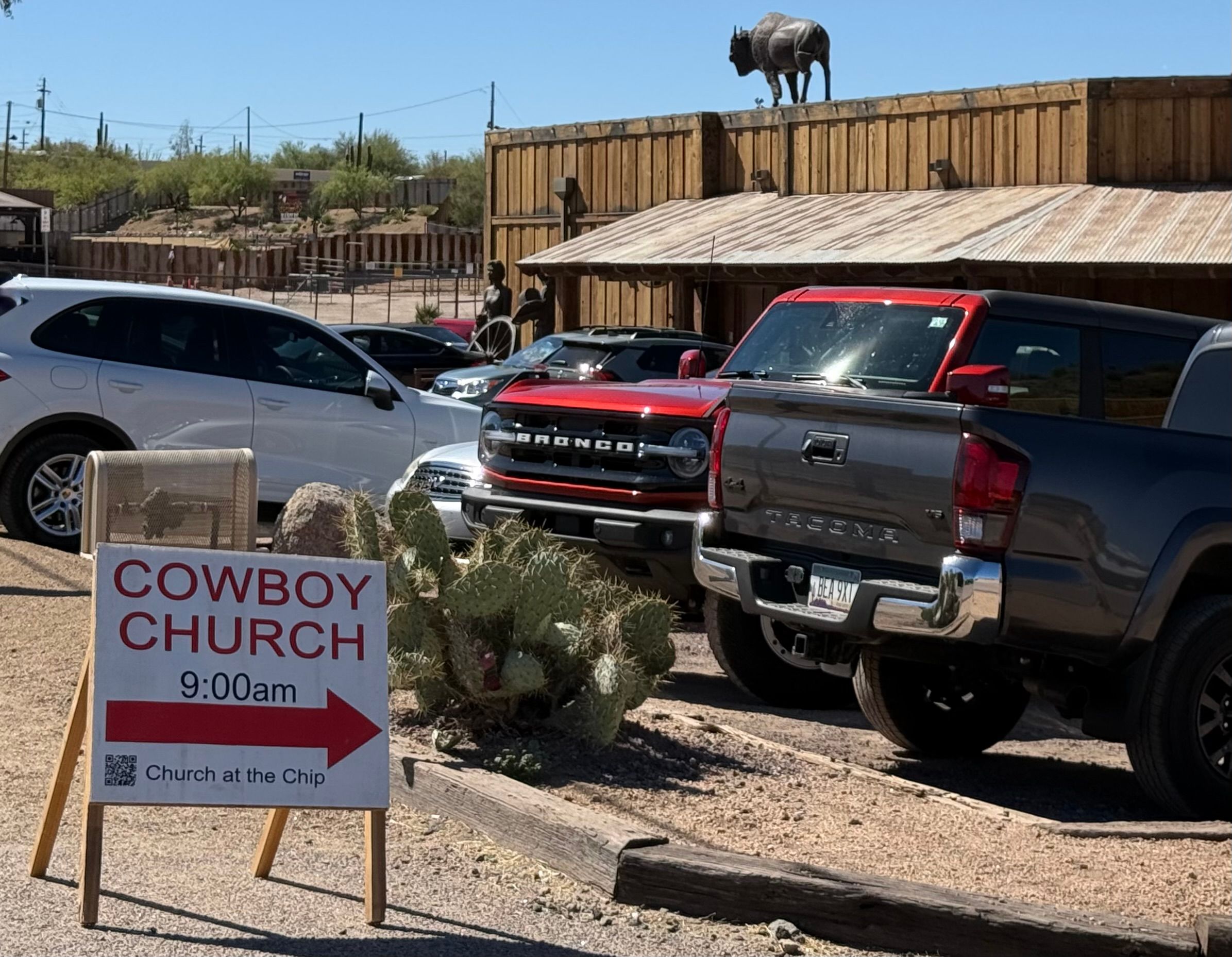 At this time of year the tourists have not yet arrived so it is mainly locals and feels quite different. The little town near the house ( Cave Creek) still has its rodeos and old cars, places to eat, but there are far fewer out of state plates. For those of a religious persuasion there is a Sunday cowboy mass one of the local rodeo centres.( and of course a BBQ and bar).