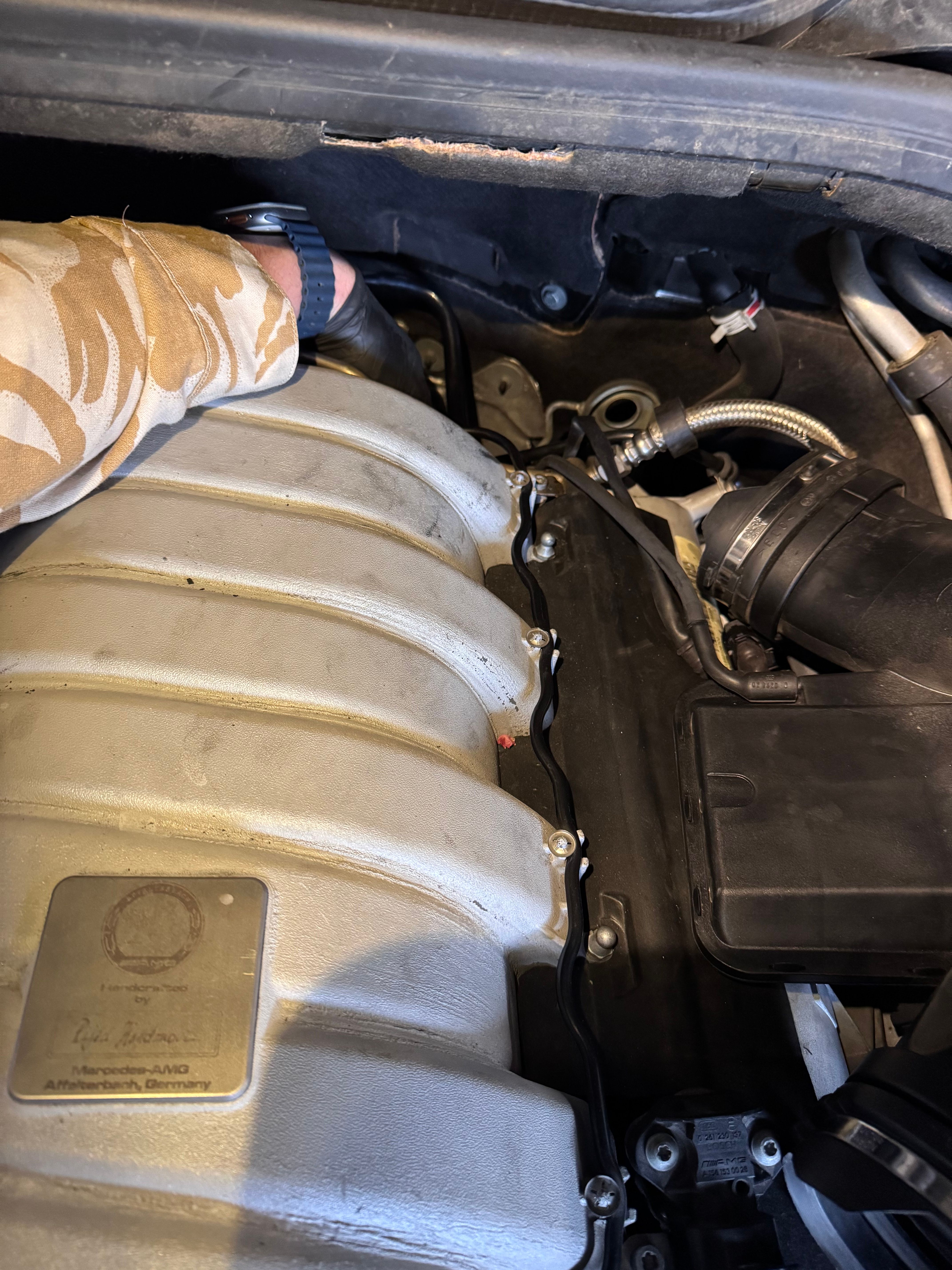 In the words of Ron Burgundy "That escalated fast" With help from there PH brains trust and a Mercedes manual I deduced the signal wire is damaged somewhere along its length, pain in the ass. Problem is to properly inspect it you have to remove the intake manifold as you cant actually see it. Not a fun job, but as it's an in house AMG engine, it's pleasing to see AMG branding on everything!