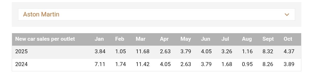 In terms of disappointing sales, it takes someone truly brave/mad to write a cheque for a brand new car that is going to rapidly depreciate - I should know as I’m one of those (I’ve had my 2025 Vantage since June)! Think this a big part of the issue. The other is the appalling taxation on people - getting higher by the years and greedy ‘tax and spend’ governments come after people’s hard earned savings and pensions.