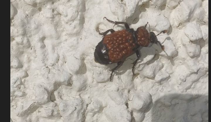 I think the red small insects are parasitic mites. Ive had other beetles come in with them and they didnt seem to badly affected by them.