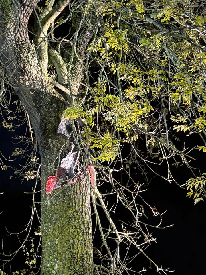 ‘Tis a real mystery! You’d definitely need a ladder to reach the affected area and would need to be very persistent to get it to light, so I don’t think it was a deliberate actCan’t believe there are any fireworks in the Uk that could do that to a tree - how bizarre! From the first pic it does look like an angled strike - I’d be tempted to try and workout where that angle ended at ground level and have a root about