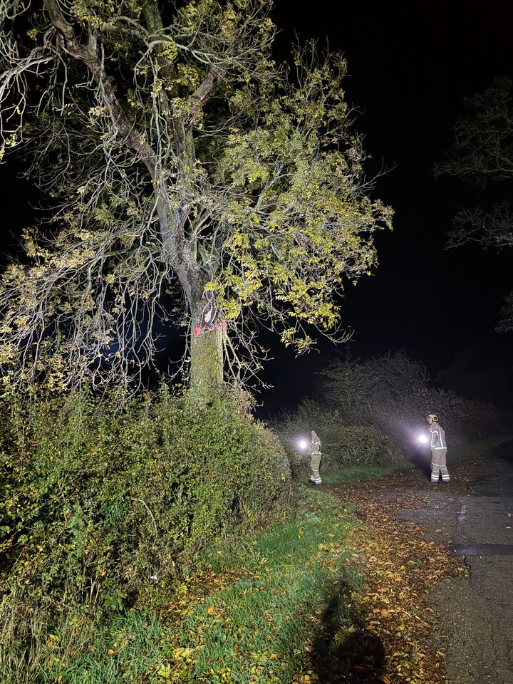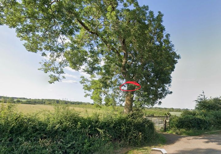 Fire was about 10 feet up the trunk, and there looked to be a chunk of the trunk missing, almost like it had been chopped out. As the tree is next to the lane, decided to call the Fire and Rescue Service - girl on the phone sounded a little disbelieving of my story, but said she d send a crew, and I continued on my way. As I was returning home they appeared on scene and were very bemused with what they found. We d had no lightning overnight, there are no electrical cables overhead and the tree was healthy, so not hollow.