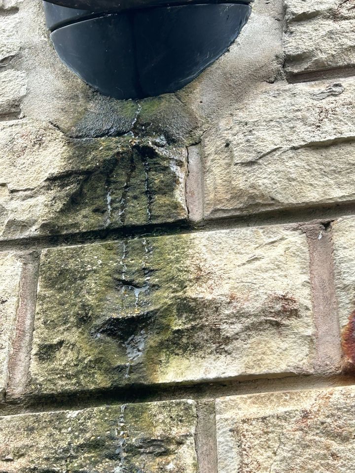 When I looked outside I noticed a water mark on the stone work directly under the where the flue comes through the outside wall.