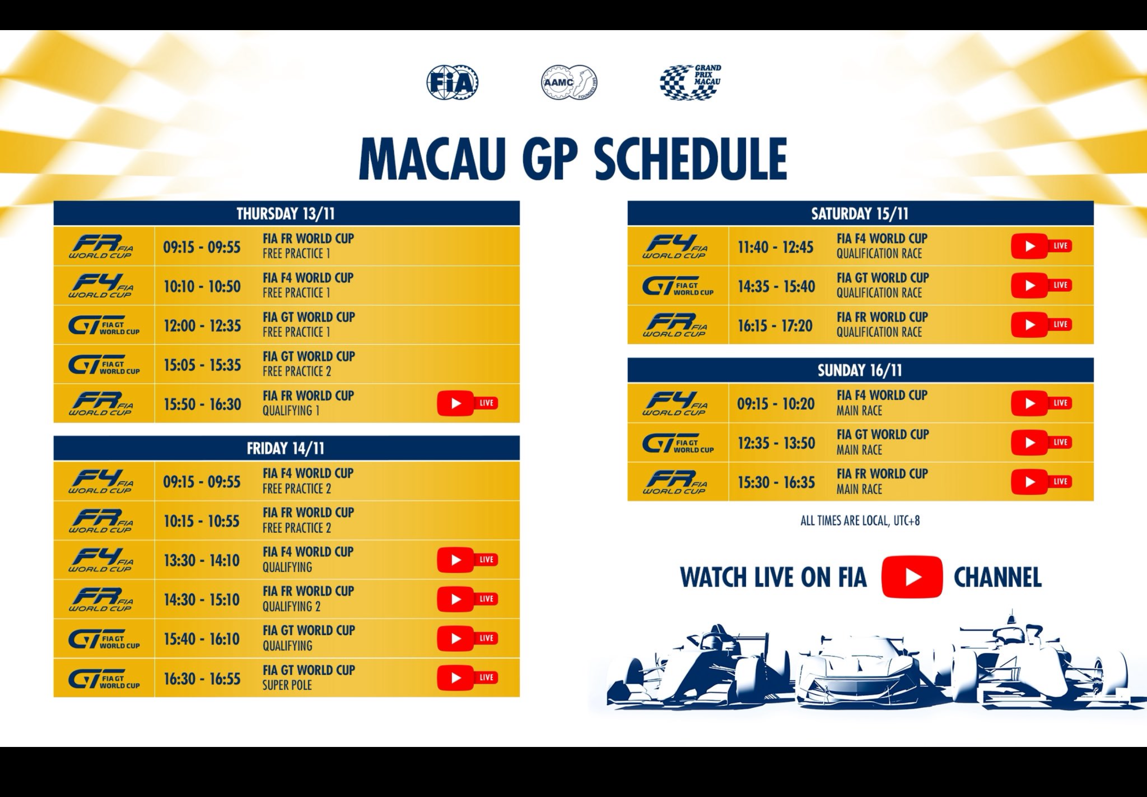 All races streamed live and to replay on FIA Youtube channel: