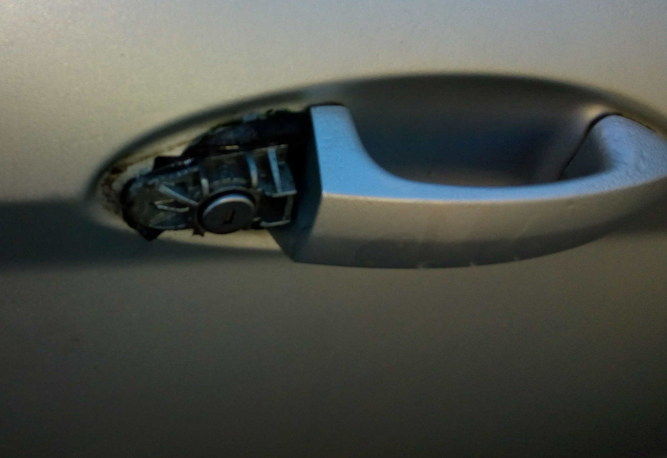 They also broke the door lock trim as shown. The lock has been wrenched over leaving a small gap. Is this the weak point?