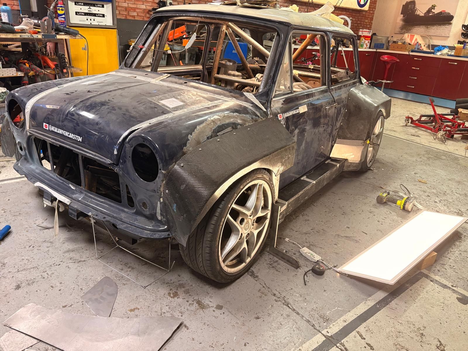 I m a bit torn on this one. Total respect for the engineering that s very impressive but those arches are WIDE!!! How heavy is that boxter engine? The whole point of the mini is its weight hence the R1 conversions.