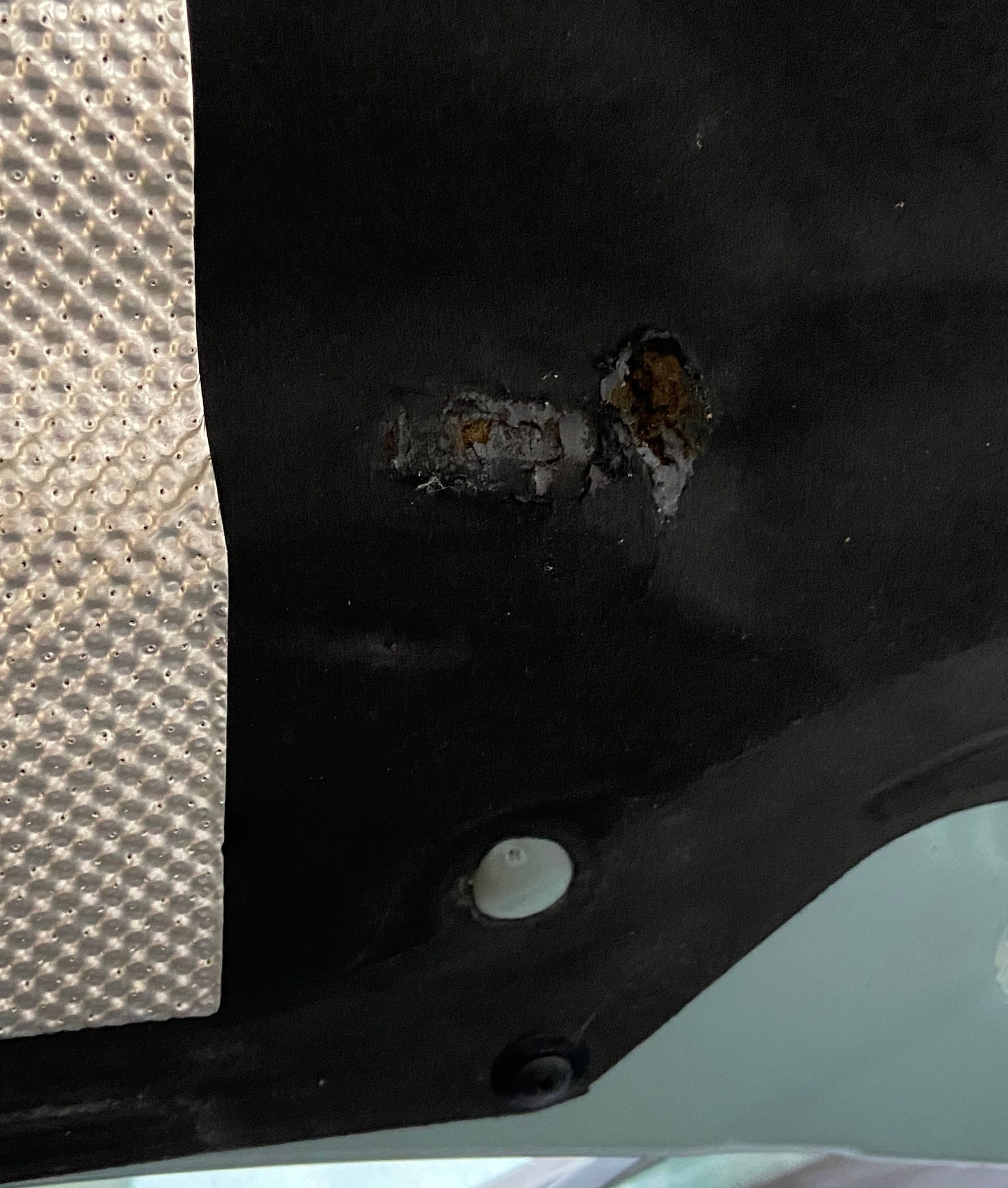 I’m going to say heat as tge edges of the soundproofing are crumbly and black but it’s something to check out tomorrow when Xmas hols begin!