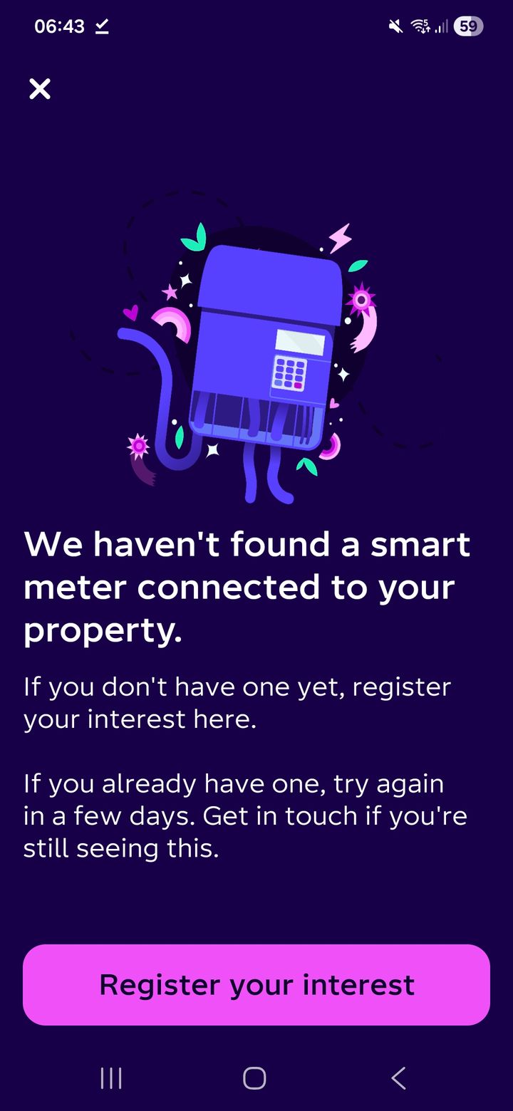 i get the no smart meter message at times since moving to Intelligent Go, I have no readings for weeks then it all catches up. Lady on the phone said they can go back 3 months apparently.