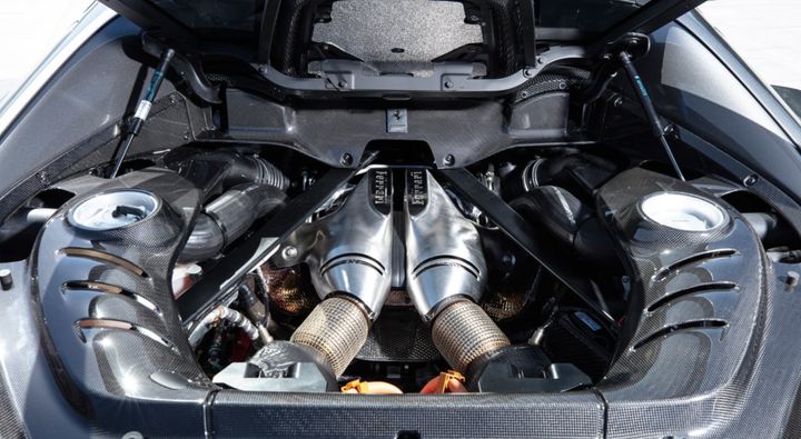 Pointing at a pretty mid mounted engine loses some gravity when everyone in the car park is well aware that the silent car parked next to it is the one that's actually got the pace.