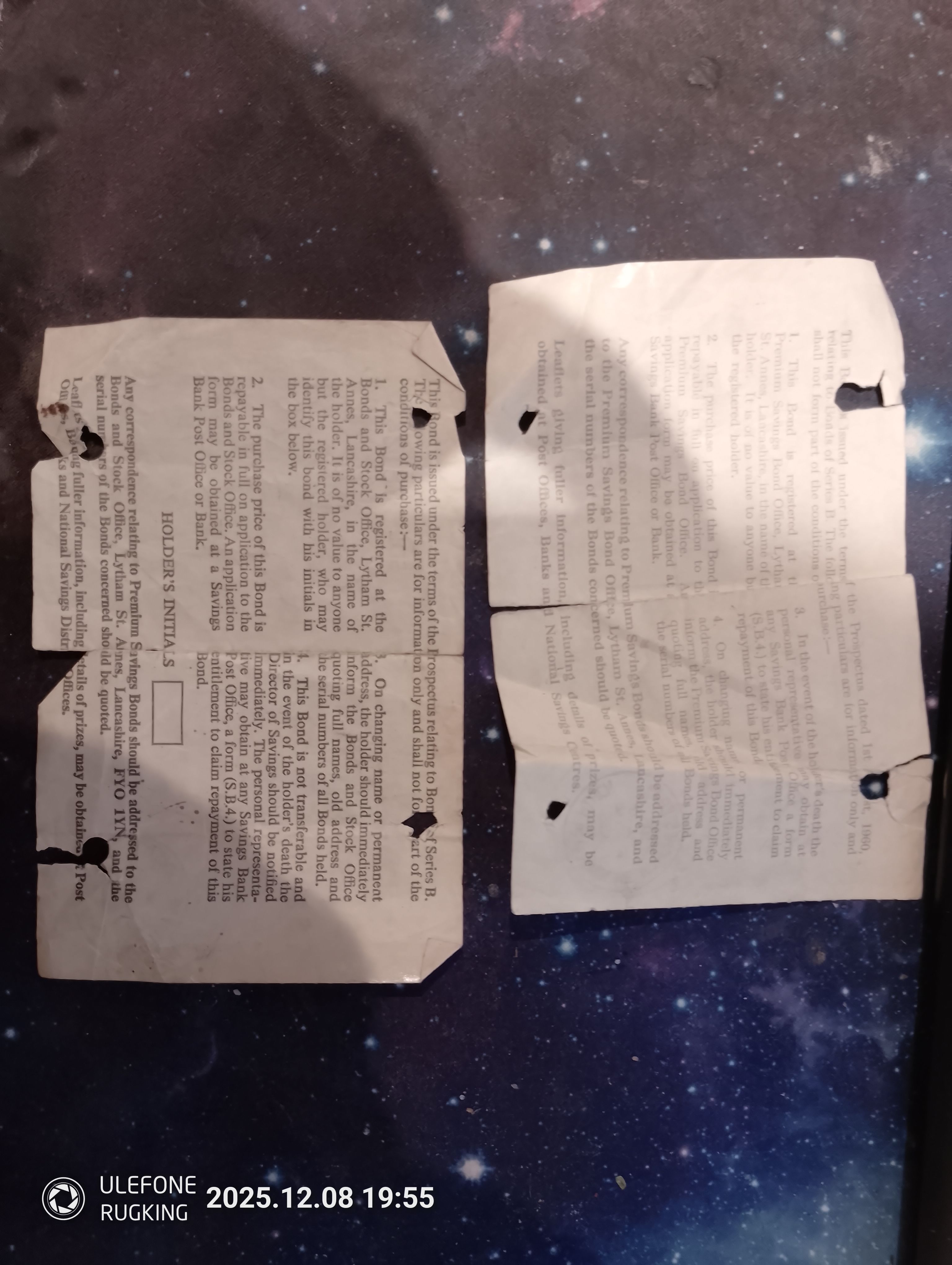 I have two old premium bonds, I think one was bought for me when I was born, nearly 55 years ago and I think the other may have been my mums (it has her initials on it) I've kept them in a folder with my birth certificate, passport etc tucked away in a drawer and never done anything with them. Are they any use now, how would I ever check if they had ever won anything. Stupidly it seems someone (not me, probably my dad) has used a hole punch on them at one stage and its gone partially through the serial number on one of them.